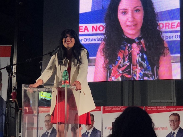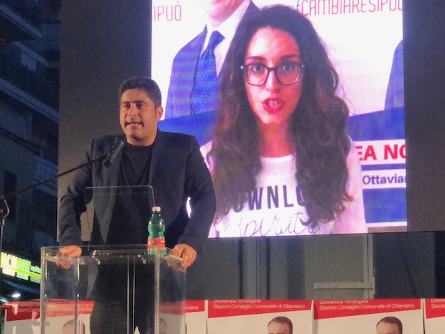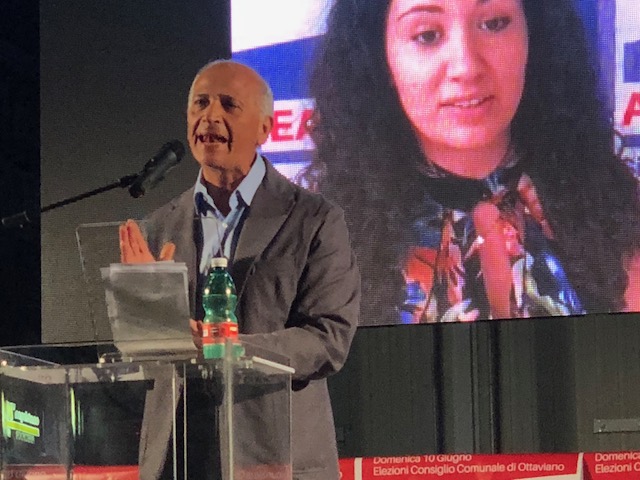 Lo slogan che un altro capolista, Francesco Ciniglio (Ottaviano Democratica) ha scelto per la sua campagna elettorale è: «Non possiamo stare a guardare». «Mi aspettavo di più dal sindaco in carica – ha detto dal palco –ho trovato invece un modo di fare politica vecchio, un pensiero unico basato sulla scarsa partecipazione della città alle decisioni, non ho visto grandi scelte strategiche: Ottaviano merita di più e lo dico anche sulla scorta degli errori da me fatti nel passato. Noi l’idea per il paese l’abbiamo, basata su cose semplici e allo stesso tempo ambiziose: abbiamo un piano regolatore, abbiamo un centro storico importante, dobbiamo fare in modo che le aziende vengano ad investire ad Ottaviano: senza lavoro non c’è alcuna prospettiva di società». Poi, Ciniglio ha lasciato alla platea l’appello a votare per il progetto di «cambiamento e innovazione».