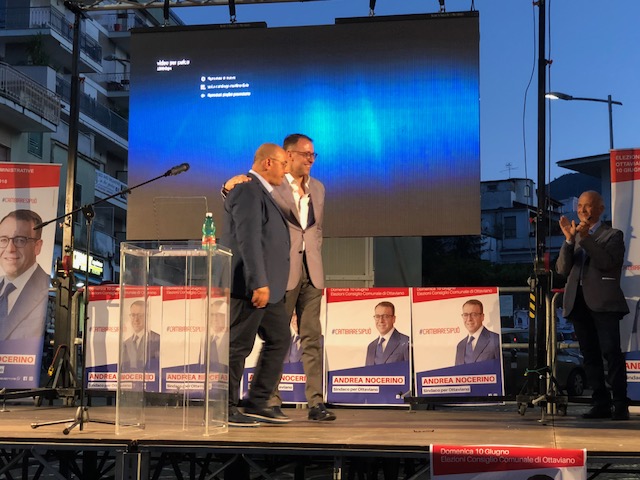 Il candidato sindaco di Idea Comune, Progressisti per Ottaviano, Ottaviano Democratica, Con Nocerino per Ottaviano, Famiglia Tradizione Solidarietà per la Rinascita di Ottaviano, Liberta Democrazia Progresso, ha chiuso la campagna elettorale ieri sera in piazza Municipio, sullo stesso palco dove mezz’ora dopo sarebbe salito il suo avversario, Luca Capasso. In una serata sobria, la candidata di Ldp Brigida Saviano ha offerto via via il microfono ai rappresentanti delle liste per lasciare poi la scena ad Andrea Nocerino.