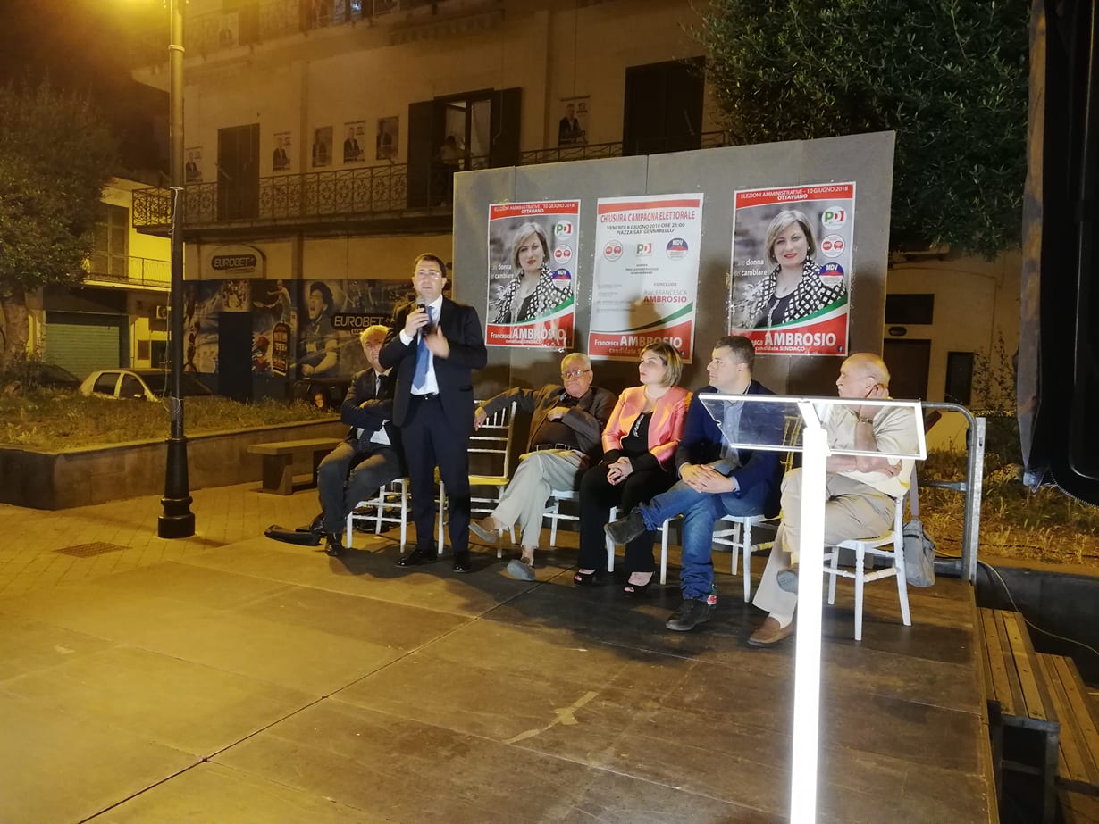 I candidati Lucia Menichini (Pd) – con un appello alla «rivoluzione femminile rappresentata dalla Ambrosio» – Sara Cozzolino (Mdv), Luisa Cozzolino (Pd) e infine Michele Andonaia di Sinistra Unita (il quale ha esordito dicendo che la coalizione della Ambrosio ha saputo parlare alla pancia delle persone, intendendo alle coscienze, e che – di contro – ha poi aggiunto: «Anche gli altri hanno parlato alle pance, ma con cene e aperitivi») hanno portato i loro saluti sul palco di San Gennarello, lasciando poi la platea alla candidata sindaco.