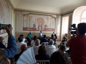 C’è, nonostante l’ora e il caldo opprimente, un pubblico folto (vedi immagine in appendice), di amici che non vedevo da tempo, di “compagni di viaggio” di Carmine. E i gesti, i saluti, gli sguardi, i ricordi, il luogo stesso e le “pompeianate” del Mozzillo (la foto che apre l’articolo) creano la suggestione del tempo che si ferma: e contribuisce a rafforzarla, questa suggestione, la splendida “lettera a Carmine” che alla fine della manifestazione viene letta da Rossella Cammisa. Dopo aver scoperto la targa ( foto in appendice), il sindaco di Ottaviano, avv. Luca Capasso, parla dell’intensità dell’affetto che nutriva fin da ragazzo per la figura di Carmine Ciniglio, e ne ricorda, con note di commozione, la sensibilità, la disponibilità, l’attenzione profonda per i valori della cultura, in particolare di quella napoletana e di quella legata al Vesuvio e al nostro territorio. Quando mi dà la parola Genny Galantuomo, che con la Salvati è stato il regista della serata, non mi alzo in piedi, perché la mia non è una commemorazione solenne – all’amico Carmine non sarebbe piaciuta – ma un tentativo di rischiarare, attraverso i ricordi, alcuni aspetti di una figura complessa, sicura di sé, ma sempre pronta a confrontarsi e a sperimentare. Dopo aver ringraziato, anche a nome di amici assenti, il sindaco avv. Capasso per l’idea della intitolazione e per la targa, parlo della capacità di Carmine di arricchire i discorsi e gli articoli con lampi improvvisi di ironia paradossale, che egli sapeva accendere al momento giusto, senza eccessi e sbavature. Carmine Ciniglio fu tra i primi a dire, chiaramente, – me lo ricordavano ieri due suoi amici di sempre, Franco Cammisa e Mario Iervolino – che il turismo ambientale era, per Ottaviano,una risorsa preziosa e che, per sfruttarla, erano necessarie una via delle Ginestre, una rete di sentieri che “aprisse” la Montagna e svelasse a tutti i suoi incantesimi, e una capillare campagna di pubblicità e di informazione costruita su video e su fotografie adatti a spiegare, con immediatezza, perché certi luoghi del Somma – Vesuvio diventano, fatalmente, “luoghi dell’anima” .Inoltre. Carmine Ciniglio riteneva che il turismo culturale avesse bisogno di un Evento che, ripetendosi ogni anno, annodasse in una sola trama il patrimonio artistico della città, il Palazzo e le memorie dei Medici, l’esperienza dell’Istituto Alberghiero, le manifestazioni e le eccellenze dell’enogastronomia.. Il Palazzo era, per lui, il centro del progetto: Carmine ricevette in dono dai Lancellotti immagini suggestive di alcune sale ancora splendidamente arredate e preziosi volumi di documenti del sec. XIX, che sono esposti, davanti alla sala, all’attenzione del pubblico e che aspettano di essere studiati. Ma il sogno di Carmine Ciniglio era il Festival del Teatro Napoletano, riservato alle compagnie dei giovani. Nel gennaio del 1985, in un articolo pubblicato sulla “Ginestra”, di cui egli era direttore, e intitolato “Riuscirà mai Ottaviano ad avere un teatro?” Carmine Ciniglio scrisse che “Il Mosaico”, un gruppo teatrale ottavianese, portando in scena, nel salone del 1° Circolo Didattico, “L’albergo del silenzio” di Eduardo Scarpetta, aveva riaperto “un solco” e riattivato “ un discorso sociale di grande importanza per i giovani e per le famiglie ottavianesi “. Nell’articolo Carmine elogiò la “mirabile” interpretazione di Enrico Iervolino, nel ruolo di Felice Sciosciammocca e di Nicola Prisco in quello di Michele Galletti. “Celestino ( Carlo Alliegro) e la cameriera Luisella (Lucietta Pirone) in certi momenti sono diventati protagonisti riuscendo ad elevare due personaggi che nel copione sono solo comprimari.. Un protagonista assoluto si è rivelato ancora una volta Agostino Auricchio (Edù per gli amici) nei panni dell’avv. Antonio Raspa: un’interpretazione eccezionalmente bella di una delle macchiette classiche del teatro partenopeo: il “cacaglio”. Dal teatro napoletano Carmine aveva appreso l’importanza dei gesti, delle espressioni del volto e dei vari tipi di silenzio, che svelano sempre la verità, rendendo vano ogni tentativo di nasconderla. Dopo gli incontri imposti dalla politica locale – quanti ce ne siamo “sciroppati” – andavamo a prendere un caffè (o un tonico), e Carmine tirava fuori da ciò che era stato detto ufficialmente, e a voce alta, nell’incontro quella verità che qualcuno si era illuso di nascondere sotto le chiacchiere. Ma un gesto lo aveva tradito: o il guardare in alto, o l’accarezzarsi il mento, o agitare l’indice in aria, come un predicatore…..