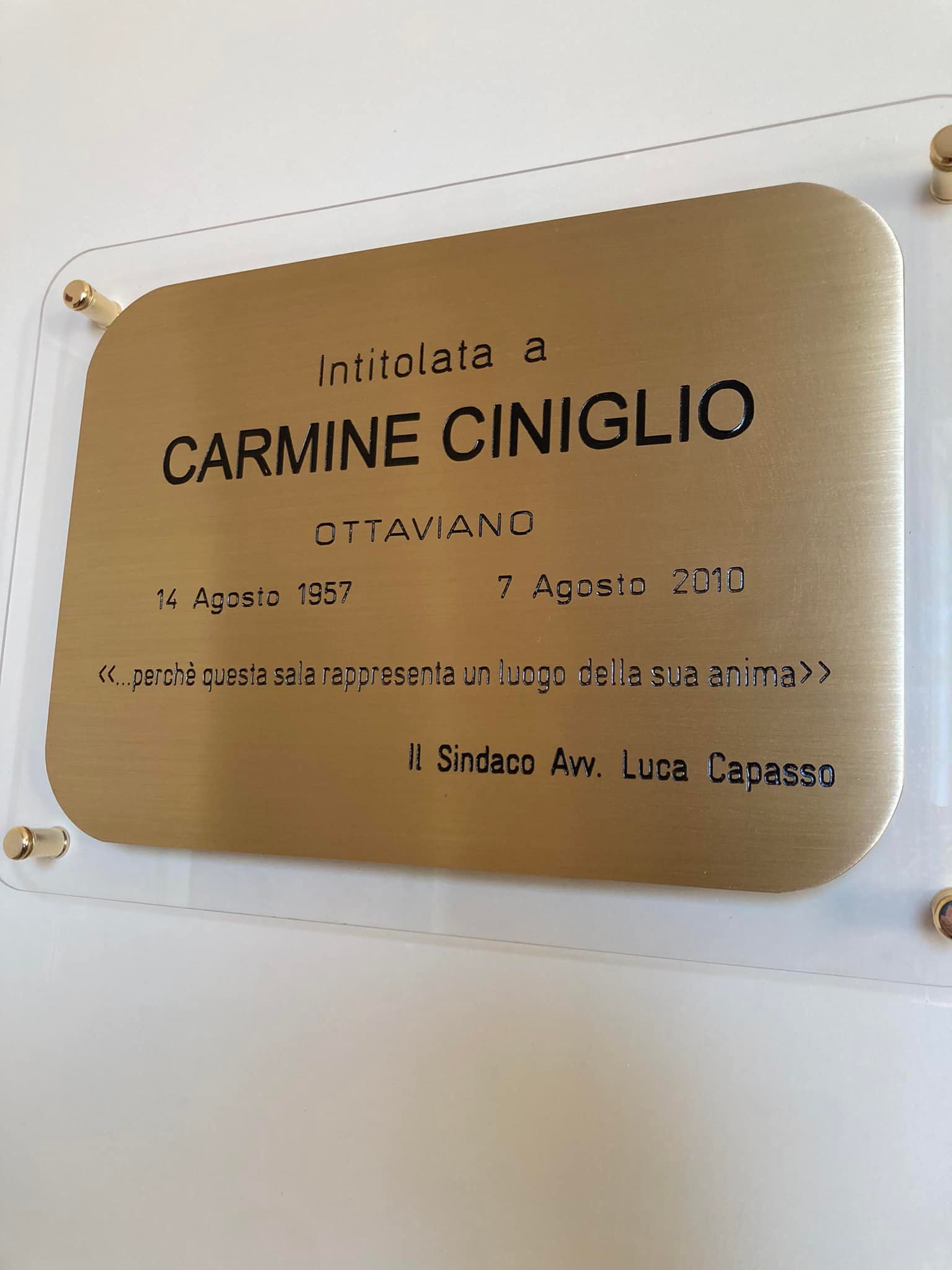 Veramente degna di lode la decisione del sindaco avv. Luca Capasso di intitolare a Carmine Ciniglio, giornalista, promotore culturale, politico, la sala del Palazzo Medici, affrescata dal Mozzillo, che fu prima “studio” di Luigi de’ Medici e poi sala di “rappresentanza”. Il Palazzo fu per Carmine Ciniglio un vero “luogo dell’anima”, come si legge sulla targa di intitolazione, che è stata “scoperta” venerdì 22 luglio. L’abilità di Carmine nel “ leggere” i gesti e il suo amore per il teatro napoletano.