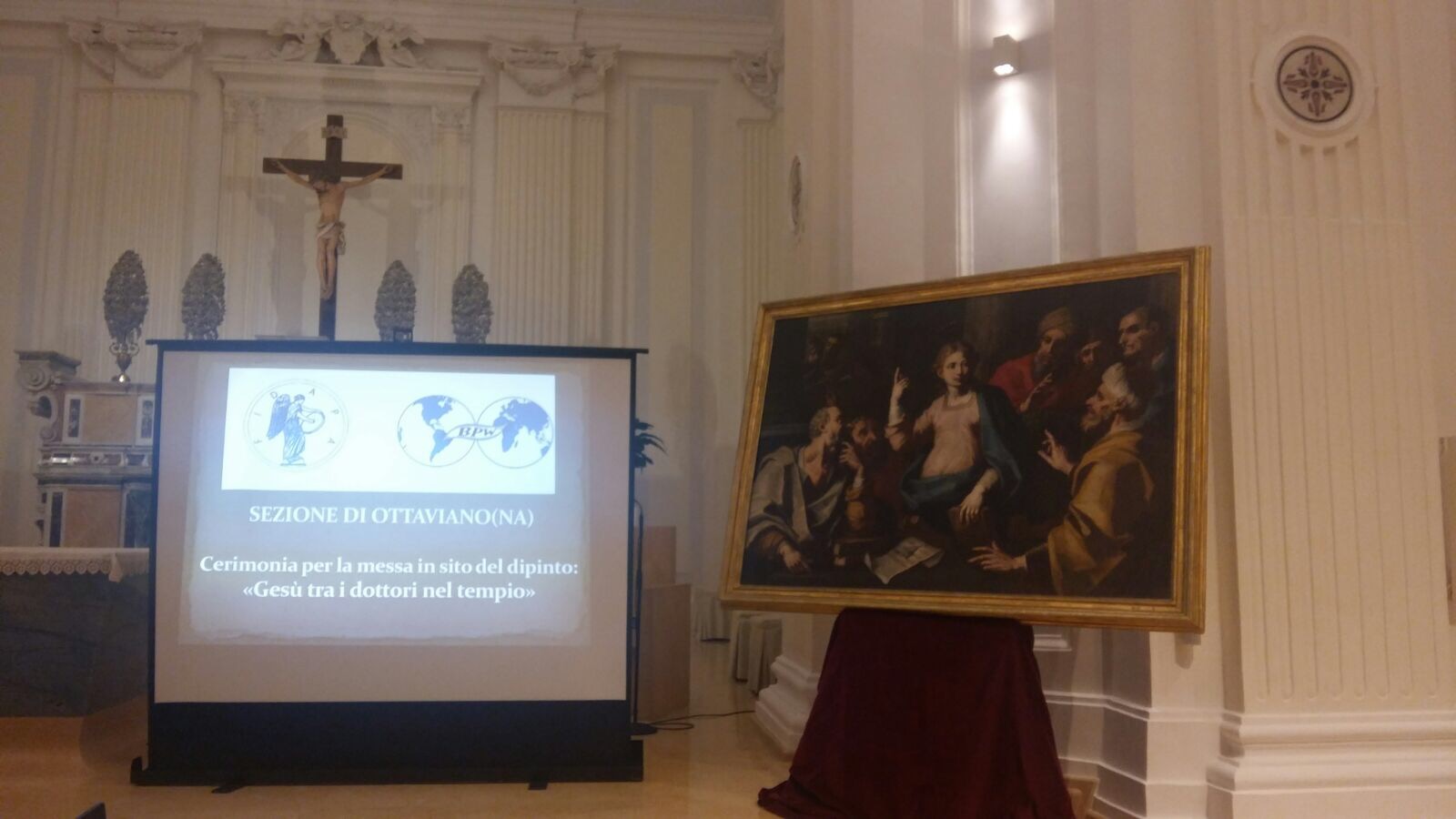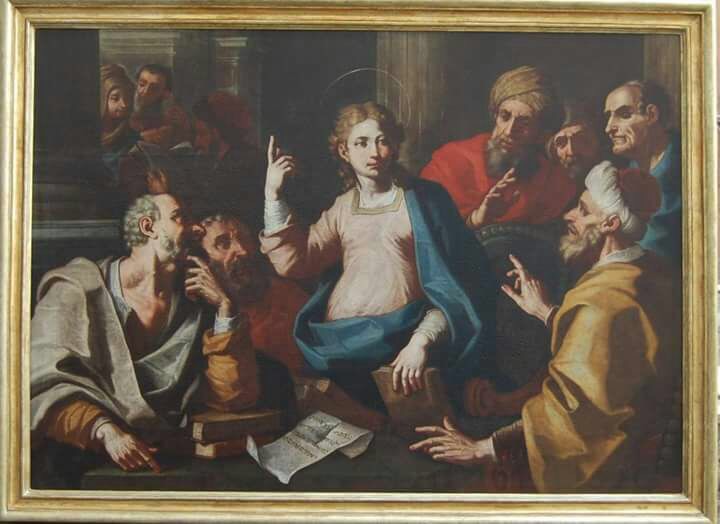 È di autore ignoto, il dipinto «Gesù tra i dottori del tempio» che la sezione Fidapa di Ottaviano ha consegnato, dopo il restauro, alla comunità parrocchiale di San Gennarello ma, risalente al diciottesimo secolo, rientra con molta probabilità nella produzione di Francesco Solimena, artista del tardo barocco noto come «l’Abate Ciccio». La collocazione temporale dell’opera d’arte, che da martedì è affidata al parroco don Raffaele Rianna, è avvalorata dall’atto di fondazione della chiesa di Montella in cui si fa menzione dei beni in dotazione.