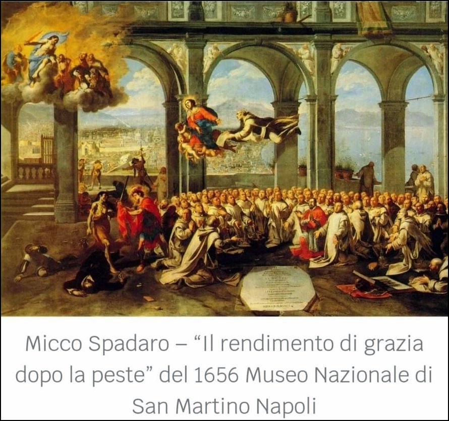 “Uno spaccato interessante, che getta un lampo di luce su questa pagina buia, arriva dai diciannove protocolli del notaio Carlo dell’Annunziata conservati presso l’Archivio di Stato di Napoli. I documenti in questione partono dall’anno 1654 ed arrivano all’anno 1691. Nonostante manchi proprio quello dell’anno 1656 – molto probabilmente non redatto in quanto bloccato dalla contingenza degli eventi – si evince dopo un’attenta analisi la precisa descrizione degli eventi che portarono alla morte di ben cinque familiari del notaio. La defunta mamma, in particolare, fu descritta dal proprio figlio come donna devotissima della Beata Vergine et tutti i Santi e Sante del Cielo e per questo collocata dallo stesso tra li angeli Beati”.