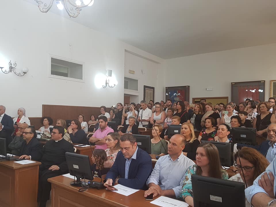 La settimana prossima toccherà ai consiglieri comunali, dopodiché ci saranno dieci giorni per convocare il consiglio comunale. Nell’aula intitolata a Pasquale Cappuccio, il sindaco Capasso ha ringraziato i bambini delle scuole, i parroci, le forze dell’ordine, i candidati sindaci sconfitti, tutti i candidati e ha avuto un pensiero per i suoi genitori.
