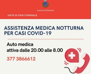 E’ attivo nuovamente da domani, venerdì 12 marzo, su tutto il territorio del Comune di Ottaviano, il servizio di assistenza medico notturna per casi covid-19. A darne notizia sono il consigliere comunale con delega alle politiche sociali Ferdinando Federico e il sindaco Luca Capasso.