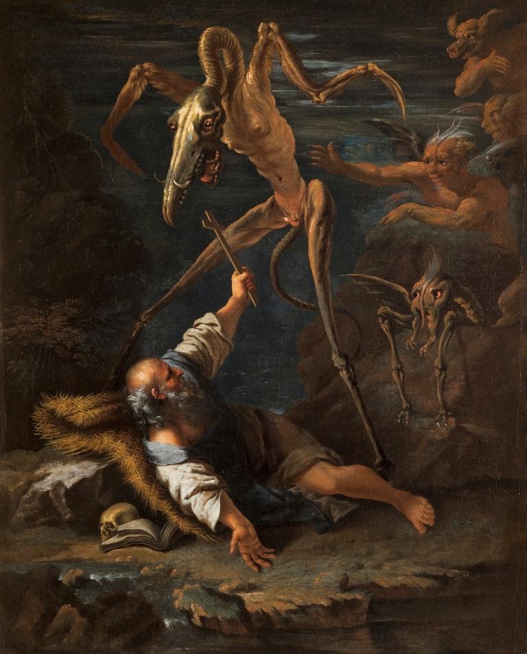 Secondo Laura Fenelli, che al Santo ha dedicato un libro corredato da una mole di documenti, Sant’Antonio Abate fa parte di quella schiera di santi che vennero “costruiti” durante l’Alto Medio Evo attraverso una complessa operazione storico- teologica di cui racconta qualche passaggio Gregorio di Tours e che ha avuto anche il contributo di Sant’ Ambrogio, “illuminato” e fortunato scopritore dei corpi dei due giovani martiri, Gervasio e Protasio, diventati poi protettori di Milano. Secondo la studiosa, la “figura” del Santo è costruita intorno al tema della sua vittoria sul fuoco: in vita l’eremita egiziano, vissuto tra i secoli III e IV, sconfisse il fuoco delle passioni e del peccato, un fuoco mostruoso che Salvator Rosa ha genialmente dipinto nel quadro che correda l’articolo. Le reliquie dell’eremita, trasportate nel Delfinato francese alla fine del sec.XI, misero fine a una terribile epidemia di “fuoco sacro” ( l’ergotismo, detto anche il “male degli ardenti”), che veniva provocato soprattutto dalla segale contaminata da funghi velenosi ( era chiamata, questa segale avvelenata, “segale cornuta”) e causava allucinazioni e necrosi. Il culto del Santo guaritore venne affidato, non senza polemiche anche aspre, all’Ordine degli Ospedalieri, che si dedicava alla cura dei malati. E poiché l’allevamento dei maiali costituiva la prima fonte di finanziamento per i numerosi ospedali fondati in Francia, nell’Italia del Nord e nella Germania meridionale dall’Ordine, e il grasso suino veniva impiegato per preparare pomate salutari, e la carne era una medicina fondamentale per i malati di “fuoco sacro”, l’immagine del maialino entrò, ed è rimasta, nell’iconografia del Santo. Ma non si può escludere anche un altro motivo: il maiale è già nei primi teologi cristiani “animale del diavolo”, e dunque il Santo lo porta accanto a sé, piccolo e tranquillo, perché i fedeli comprendano immediatamente che egli ha domato il demonio e ha purificato il corpo dell’animale in cui quello si nascondeva. Perciò i contadini, che uccidevano il maiale proprio a gennaio e sfamavano la famiglia con le sue carni conservate e trattate in vario modo, scelsero Sant’ Antonio come protettore degli animali e delle stalle e a poco a poco celebrarono la sua festa con il fuoco liberatore e purificatore.