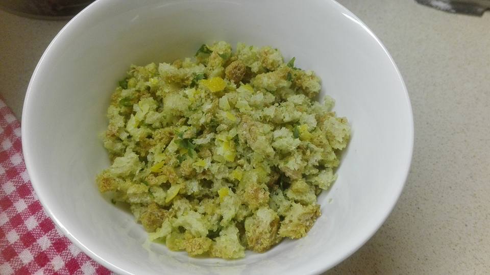 Per il crumble di pane alle erbe