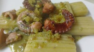 Quando la cremosità è quella giusta, spegnete e impiattate rapidamente per evitare che la pasta si asciughi, aggiungendo il crumble di pane alle erbette su ciascuna porzione, come se fosse del parmigiano e senza mescolare, in modo che questo non perda la sua croccantezza per effetto dell’umidità della pasta.