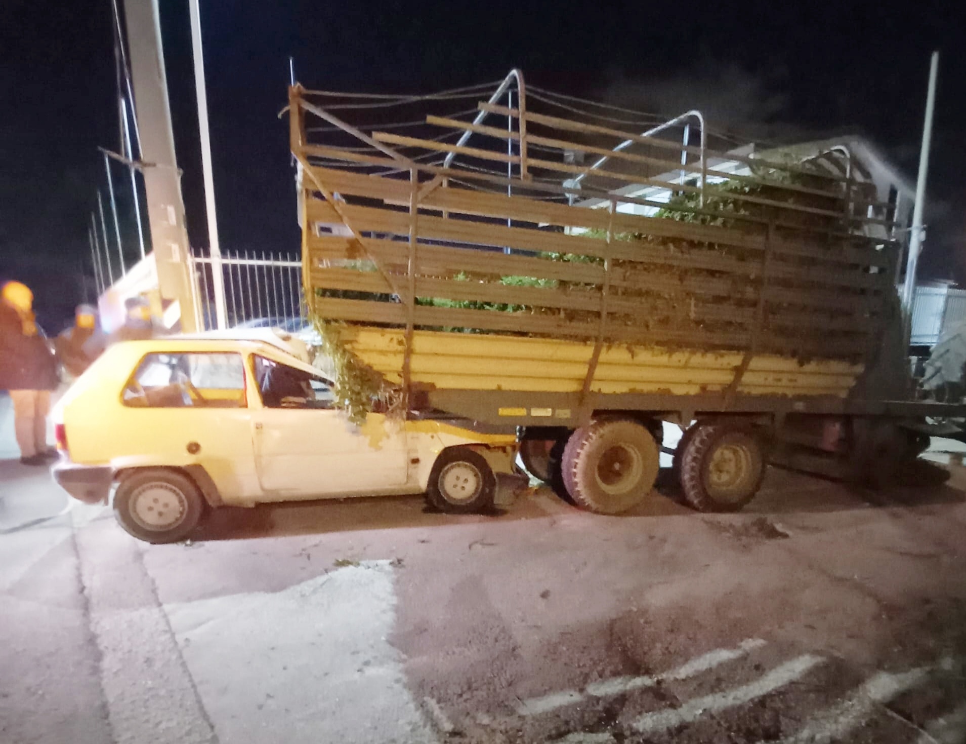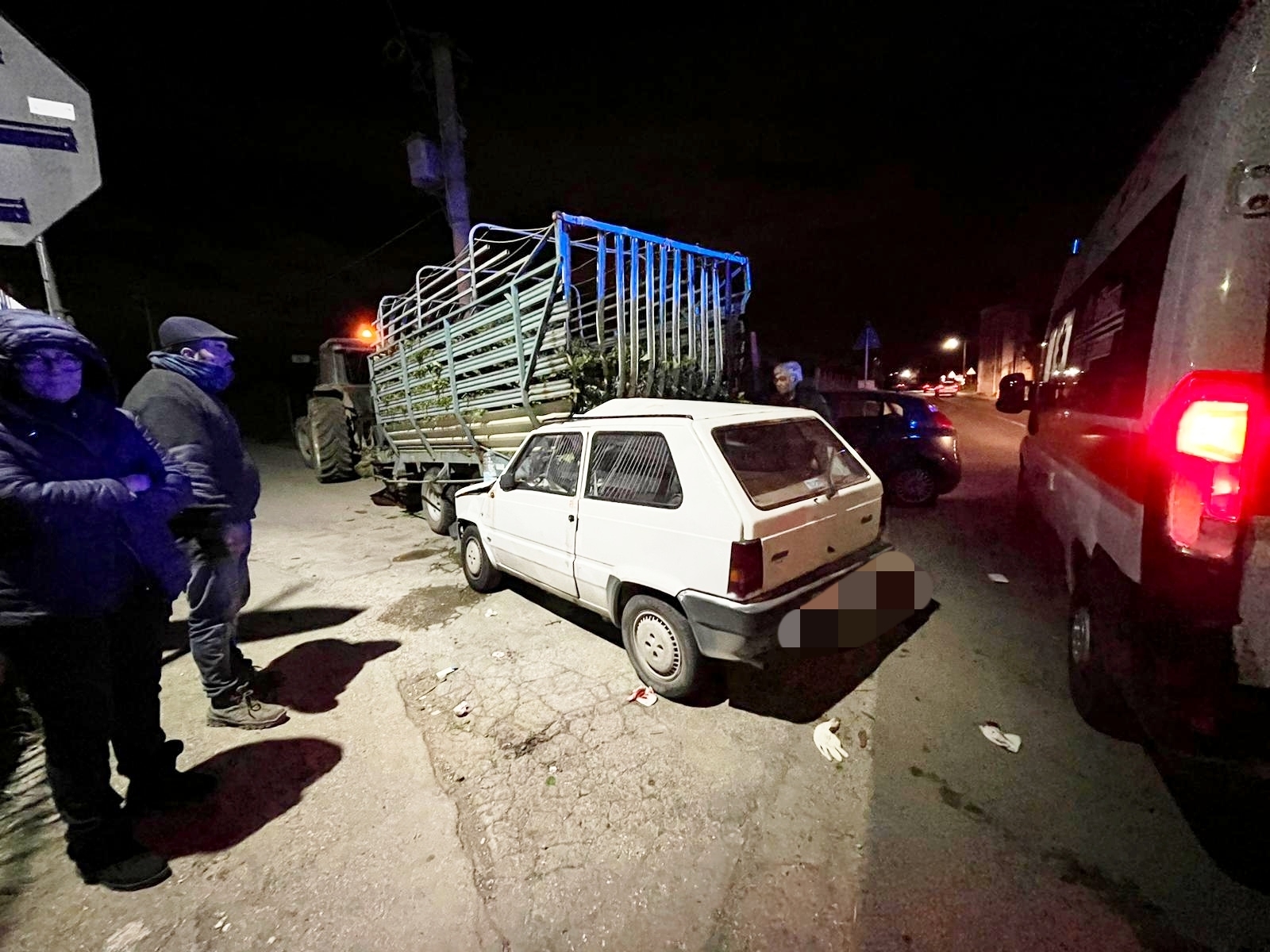 Un veicolo tipo Fiat Panda perdeva il controllo forse per una manovra brusca di un trattore e andava a schiantarsi sotto il cestello della macchina agricola. Difficilissimi i soccorsi per estrarre dalle lamiere il conducente.