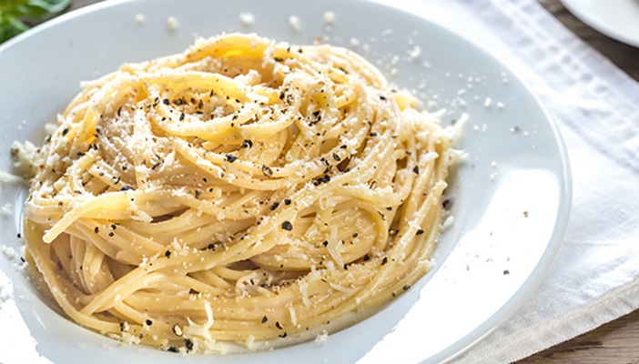I Maestri nazionali dell’arte culinaria sentenziano concordemente che gli spaghetti “cacio e pepe” sono un “piatto” prezioso che la cucina romana ha creato e ha messo a disposizione di tutti i buongustai. A questo “piatto” Aldo Fabrizi ha dedicato una divertente poesia, “Spaghetti alla scapola”: “Tu moje, doppo er solito trasloco, / se gode co’ li pupi sole e bagni, / e tu, rimasto solo, che te magni, / si nun sei bono manco a accenne er foco? / Un pasto in una bettola, a dì poco, / te costa un occhio appena che scastagni; / si te cucini invece ce guadagni / e te diverti come fusse un gioco. / Mo te consijo ‘na cosetta cicia / ma bona, pepe e cacio solamente, / che cor guanciale poi se chiama Gricia. ..