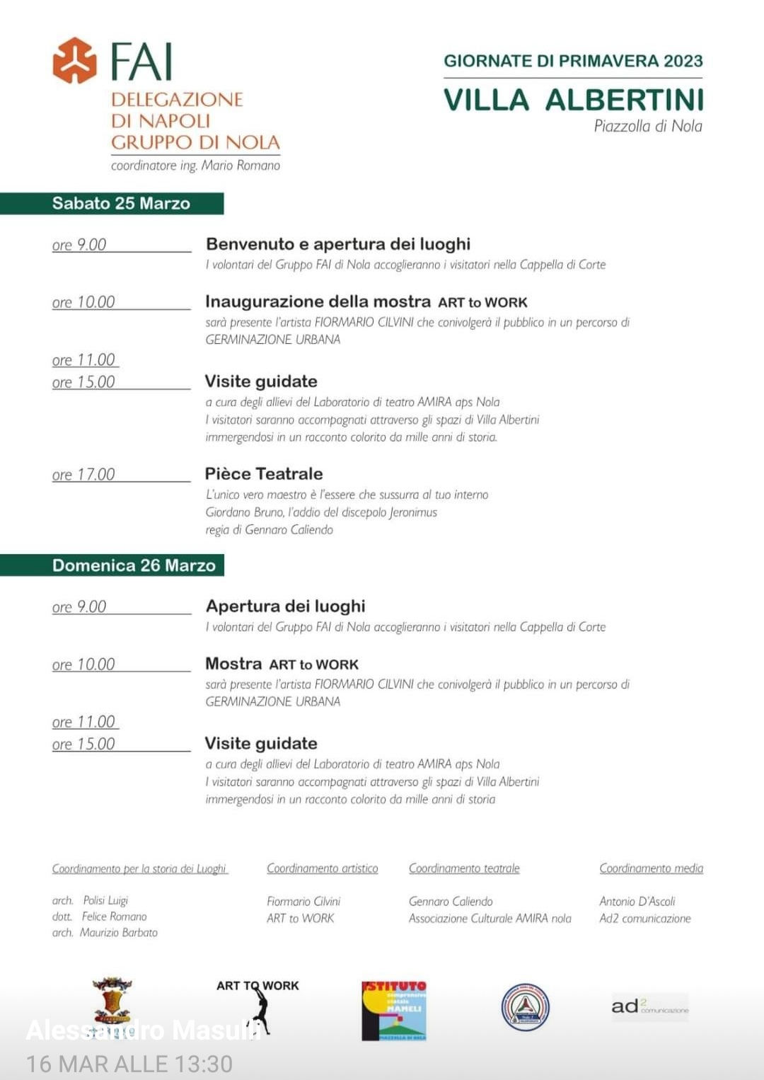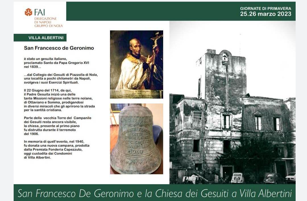 Villa Albertini si trova nella frazione di Piazzolla di Nola in provincia di Napoli, verso le falde del Monte Somma al confine con il Comune di Ottaviano. In occasione delle giornate FAI, in via del tutto eccezionale, i condomini renderanno fruibili alcuni spazi solitamente inaccessibili. Appuntamento sabato 25 e domenica 26 marzo a partire dalle ore 9:00.