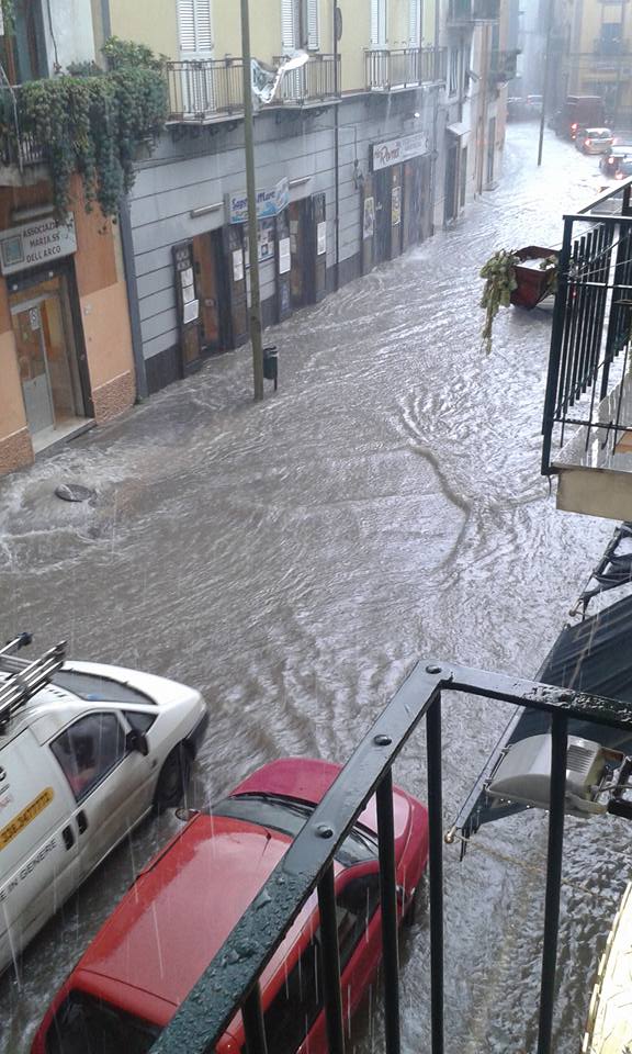 La foto scattata a Saviano e che immortala un signore mentre rema nel canotto in pieno centro cittadino dà tutta la misura della situazione ormai insostenibile in cui sta sprofondando ma, anzi, sarebbe meglio dire “naufragando”, tutta la pianura dell’entroterra a est di Napoli. Da Casalnuovo a Pomigliano, da Acerra a Brusciano, Mariglianella, Marigliano, Saviano, Nola, il quadro è davvero di quelli sconfortanti. Intanto la gente è talmente impaurita che ogni volta che piove si rintana in casa. E chi si rifugia ai piani bassi degli edifici nemmeno si sente tranquillo. Paura anche sulle pendici del monte Somma, lato nord del Vesuvio. Qui, a Sant’Anastasia, Somma Vesuviana, Ottaviano, a causa della pendenza l’acqua piovana defluisce piuttosto rapidamente verso i comuni posti in pianura. Ma nel momento in cui defluisce il terrore si impadronisce delle strade, che in questi frangenti drammatici si trasformano in grossi torrenti in piena. Quattro i “soliti” motivi di questo sfascio: il cemento eccessivo, l’occlusione dei Regi Lagni, la mancata manutenzione delle caditoie e l’inadeguatezza della portata delle fogne. Sarebbe necessario un intervento massiccio della Regione, chiamata a mettere d’accordo i vari raggruppamenti di comuni. Che da soli non sono in grado di andare da nessuna parte.