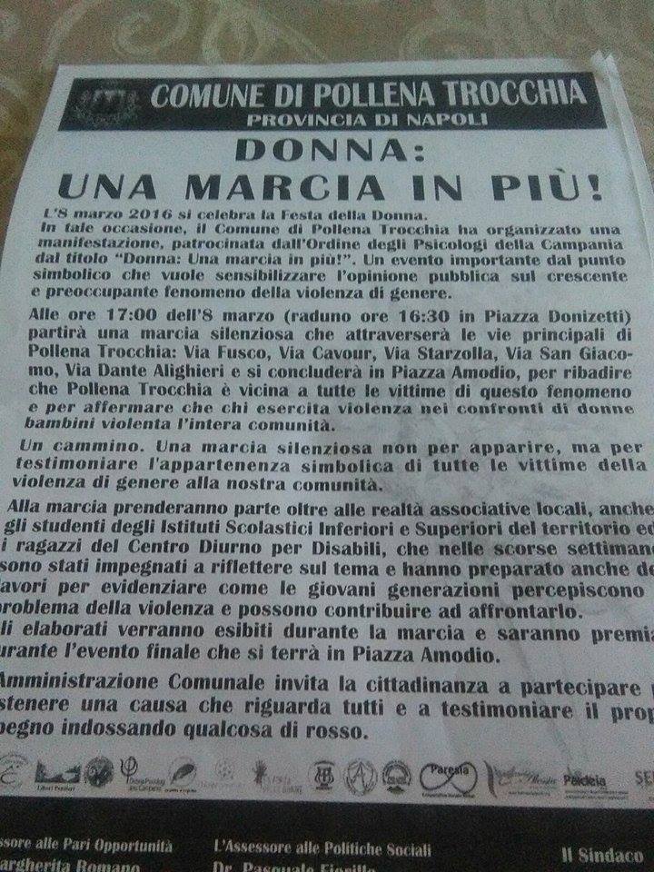 Pollena Trocchia ha voluto ricordare così l’8 marzo, con una marcia silenziosa a tappe nelle quali sono state declamate poesie e lette frasi per sottolineare l’importanza del ruolo della donna nella famiglia e nella società.