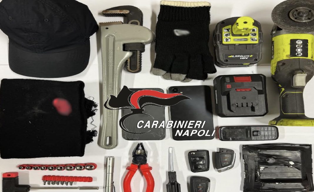 L’uomo viene bloccato mentre gli altri 3 passeggeri riescono a fuggire. L’auto viene perquisita e vengono rinvenuti numerosi attrezzi utili per lo scasso e il furto di auto.