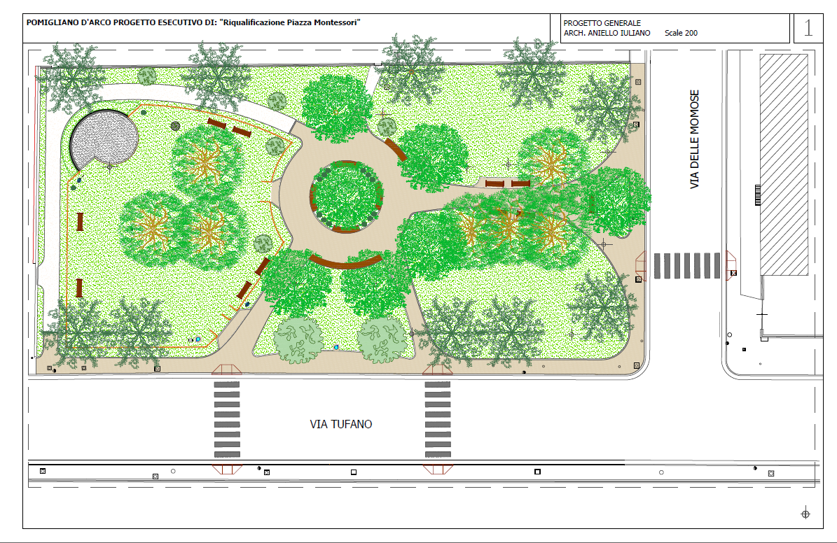 Il progetto di piazzetta Montessori porta la firma dell’architetto Aniello Iuliano e prevede il rifacimento del marciapiede esistente, la valorizzazione del verde esistente con la creazione di percorsi pedonali, la sistemazione di nuovo arredo urbano con panchine e cestini, la messa a dimora di ulteriori specie arboree, la realizzazione di un impianto di pubblica illuminazione con corpi a Led e la predisposizione di un impianto di irrigazione. Le novità che gli amministratori intendono estendere a molte aree cittadine riguardano però l’ubicazione di una mappa tattile all’ingresso e un’area che si chiamerà «Pipican» …che come il nome fa presumere sarà appunto destinata allo sgambettamento degli amici a quattro zampe, con sabbia e dispenser di bustine per raccogliere le deiezioni.