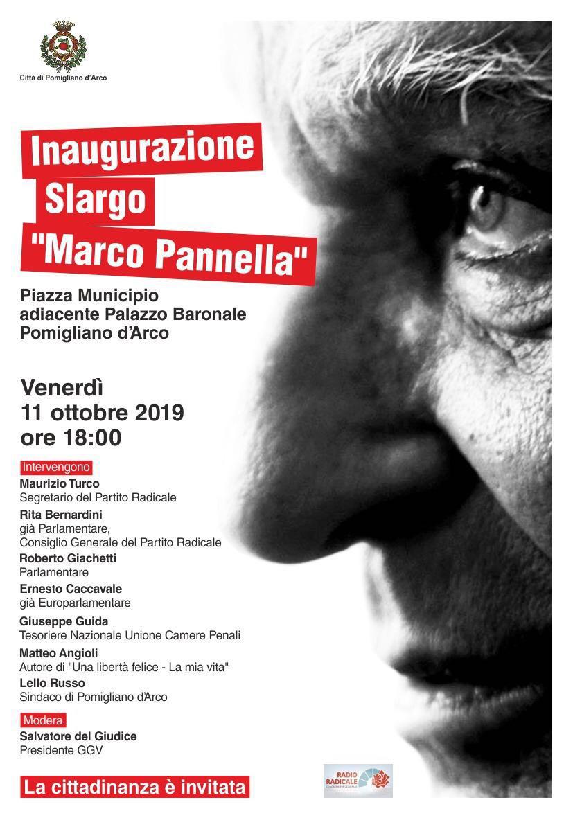 Venerdì 11 ottobre, alle ore 18, l’intitolazione dello slargo adiacente il Palazzo Baronale (piazza Municipio) al leader radicale Marco Pannella, scomparso nel 2016.