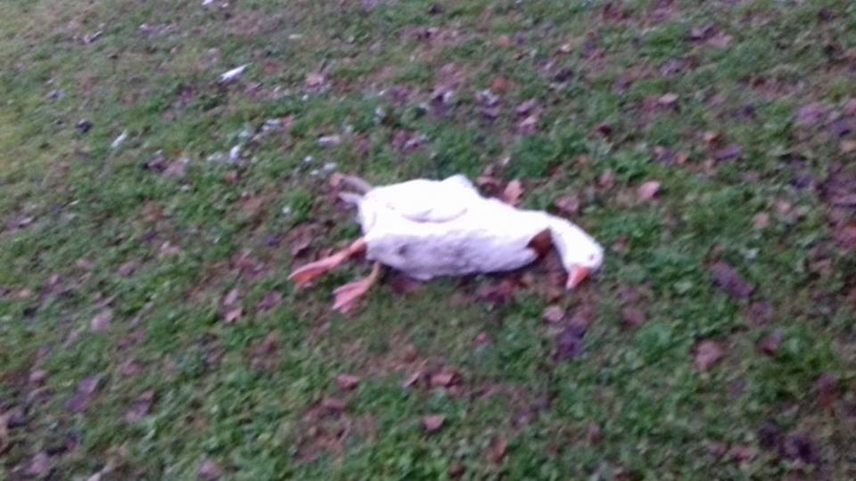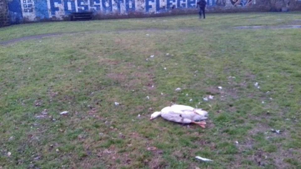 È morta una delle tre oche che zampettano nel parco pubblico “Giovanni Paolo II”. È stata trovata esanime nei giardinetti. Aveva una grossa ferita al collo che fa pensare a uno sgozzamento, forse opera di un cane randagio.