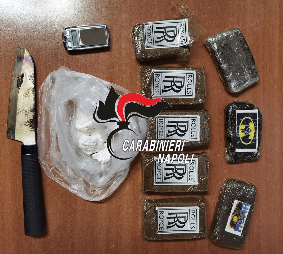 I carabinieri della sezione operativa di Castello di Cisterna hanno arrestato per detenzione di droga a fini di spaccio Alexander Lorenzo Cirelli (Napoli il 30/07/98) e Michelangelo Cirelli (Napoli il 21/08/93), entrambi residenti a Pomigliano. Durante una perquisizione, prima personale e poi domiciliare, sono stati trovati in possesso di 750 grammi di hashish, 28 di cocaina e 1,5 di marijuana.