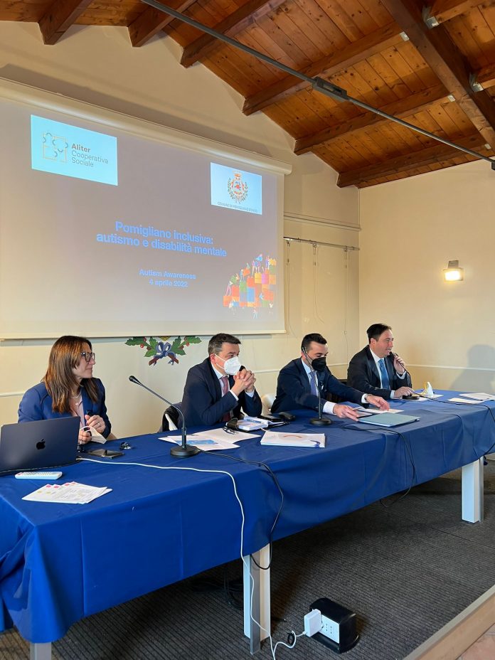 POMIGLIANO D’ARCO – È stato intitolato “Pomigliano inclusiva, autismo e disabilità mentale”, il progetto realizzato dall’Assessorato alle Politiche Sociali del Comune di Pomigliano d’Arco in collaborazione con la cooperativa sociale Aliter ed anche l’Assessorato Comunale al Commercio. Lo scopo di questo progetto è quello di contribuire a migliorare la qualità della vita delle persone affette da autismo, in modo che possano condurre un’esistenza soddisfacente. Iniziativa che è stata presentata ieri sera ufficialmente dall’Amministrazione Comunale ed alla quale sono intervenuti il sindaco di Pomigliano d’Arco, Gianluca Del Mastro, l’Assessore alle Politiche Sociali del Comune, Salvatore Esposito, il presidente della cooperativa Aliter, Carmen Mosca, il Delegato per la Disabilità e Dsa dell’Università Federico II, Alessandro Pepino, il presidente di Fish Campania Onlus, Daniele Romano, la consigliera comunale Saveria Toscano. «Il nuovo progetto sull’autismo – ha sottolineato il sindaco Gianluca Del Mastro – mostra la volontà di una Città intera di puntare all’inclusività e alla realizzazione dei diritti per tutti i cittadini. La presenza di un folto pubblico alla manifestazione di ieri indica che Pomigliano rappresenta un punto di riferimento importante per le politiche sociali in tutto il territorio».