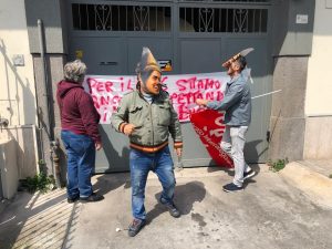 Non mollano gli operai licenziati l’anno scorso in via definitiva dalla FCA. Stamattina Mimmo Mignano, Roberto Fabbricatore, Antonio Montella e Marco Cusano hanno attaccato uno striscione molto polemico sul portone della casa del vicepremier e ministro del Lavoro e dello Sviluppo Economico, Luigi Di Maio, in via Toscano. “Per il reddito di cittadinanza stiamo ancora aspettando: Di Maio sei un bugiardo”. Il riferimento è alla recente promessa fatta ai cinque operai da Di Maio, giunto di recente in visita allo stabilimento Avio, sulla rimodulazione dell’aiuto varato per tutte le famiglie, famiglie il cui reddito Isee è al di sotto dei 9360 euro all’anno. “Ma molte famiglie – spiega Mìgnano – non hanno avuto questo aiuto, cioè il salario medio mensile di 780 euro, mentre altre a cui non spetta l’hanno avuto. Noi per esempio, anche se siamo stati licenziati e ora siamo senza soldi e senza posto, non l’abbiamo avuto il reddito di cittadinanza perchè hanno fatto valere la nostra dichiarazione dei redditi 2018, il che vuol dire che tutti i lavoratori licenziati l’anno scorso sono rimasti a piedi, abbandonati: Di Maio, dunque, è un bugiardo”. I licenziati stamattina si sono presentati davanti alla casa del leader del Movimento Cinque Stelle travisati con una maschera raffigurante il volto del vicepremier in versione Pinocchio, con un naso molto allungato. Quindi hanno messo nella cassetta postale il contenuto della loro proposta di modifica dell’r.d.c., formulata durante l’assemblea tenuta sabato scorso al teatro Gloria con i militanti del sindacato nazionale intercategoriale di base Si Cobas. Assemblea che in un primo momento si doveva tenere nella sala comunale del palazzo dell’Orologio ma che a causa del divieto del sindaco di Forza Italia, Raffaele Russo, è stata poi dirottata nel teatro cittadino. “Per la verità – racconta ancora Mignano – volevamo consegnare la nostra proposta di modifica del reddito di cittadinanza direttamente nella mani del padre di Luigi Di Maio, che abbiamo visto mentre entrava nel suo palazzo. Ma lui ha tirato dritto. Non si è girato neppure”. Sono molte le contraddizioni che stanno caratterizzando il reddito di cittadinanza. Per esempio non è vero che sia destinato proprio a tutte le famiglie che non abbiano case, auto nuove o conti correnti superiori ai 6 mila euro e che abbiano realizzato nel 2018 un Isee inferiore ai 9360 euro. In questo caso, cioè per i nuclei familiari con marito e moglie che percepiscono salari molto bassi, non c’è stata nessuna integrazione al reddito. Nessun aiuto. Se infatti la somma dei redditi lordi di marito e moglie supera i 9360 euro allora un’integrazione, anche bassa, anche di poche centinaia di euro, non arriva comunque. Pure se l’Isee familiare 2018 esce molto al di sotto dei 9360 euro. “Ma questo Di Maio – concludono i licenziati FCA – quando ha fatto la campagna elettorale sul reddito di cittadinanza non l’ha mai voluto dire: è un bugiardo consapevole di esserlo. E tanta gente che ne aveva effettivamente bisogno è rimasta fuori”. C’è poi il caso, ormai dilagante, sotto gli occhi di tutti, dei furbetti che sono riusciti ad ottenere l’r.d.c. pur continuando a lavorare al nero. Per loro controlli zero e impunità assicurata.