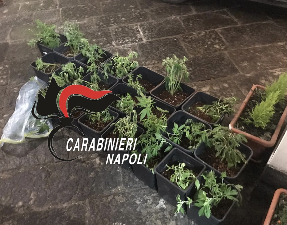 Pomigliano, Sant’Anastasia e Brusciano controlli a tappeto dei Carabinieri: a casa di un pusher 86 piantine di marijuana. In una botte una revolver e giubbotti antiproiettili.