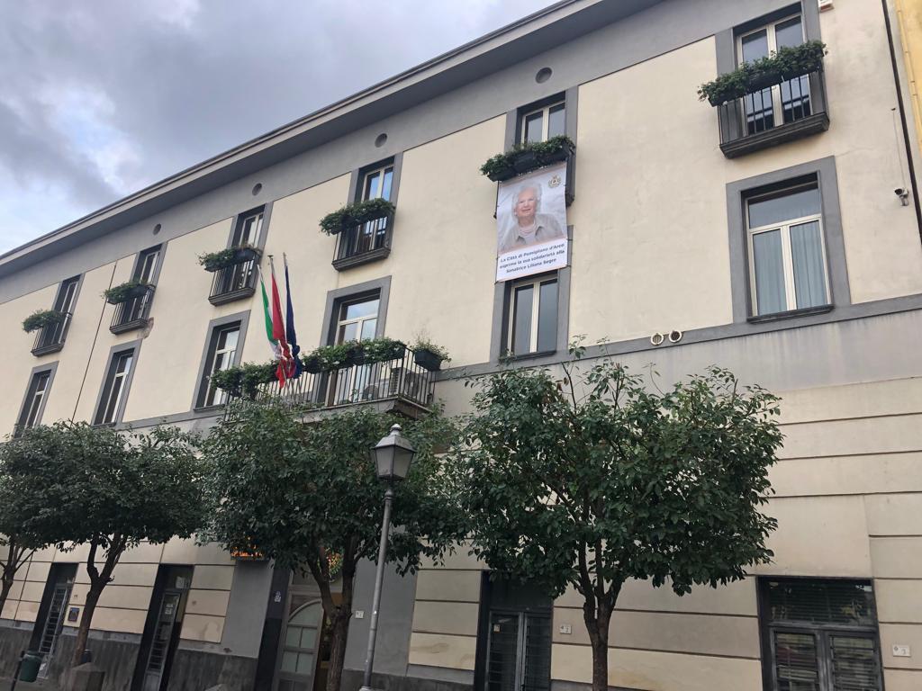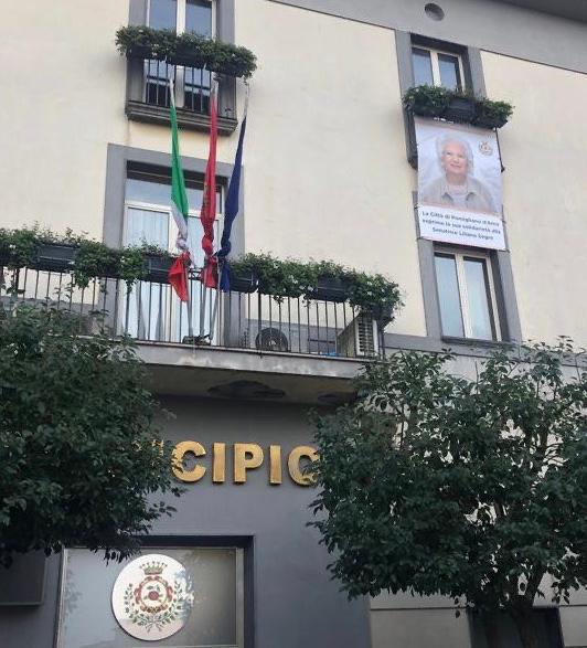 Il messaggio e la foto della senatrice testimone della Shoa italiana e superstite dell’Olocausto, campeggiano da ieri sera sulla facciata del municipio di Pomigliano d’Arco.