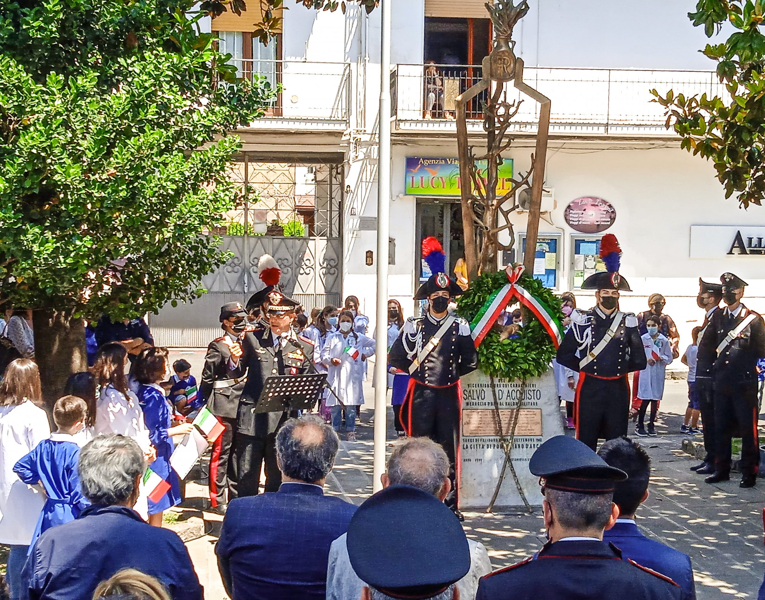 Dopo settimane di attesa è stata restaurata e rimessa al suo posto la stele di bronzo dedicata a Salvo D’Acquisto. Il monumento, alto più di due metri, era stato rubato nel centro di Pomigliano la notte tra il 27 e il 28 marzo scorsi, da alcuni giovani particolarmente problematici. I ragazzi, due giovani rispettivamente di 18 e 17 anni con problemi di tossicodipendenza, subito dopo essere stati arrestati in tempo record dai carabinieri hanno confessato di aver trafugato il monumento per procurarsi i soldi necessari all’assunzione di una dose di droga. Intanto ieri sono stati proprio i militari dell’Arma a celebrare la reinstallazione sul piedistallo da cui era stata divelta e trafugata la stele bronzea dedicata al vicebrigadiere dei carabinieri trucidato nei pressi di Roma nel 1943 dai nazisti per aver offerto in sacrificio la sua vita al posto di quella di 22 ostaggi civili destinati alla fucilazione. La cerimonia è stata presieduta dal comandante provinciale dei carabinieri, il generale Canio Giuseppe La Gala, accompagnato, tra gli altri, dal sindaco di Pomigliano, Gianluca Del Mastro, dal parroco della chiesa del Rosario, don Aniello Tortora, dal presidente del consiglio comunale di Pomigliano, Salvatore Cioffi, dal comandante della stazione carabinieri di Pomigliano, Valerio Scappaticci, e dal comandante della polizia locale, il colonnello Luigi Maiello. Davanti a loro c’erano gli alunni della scuola elementare Frasso con le loro maestre. “Salvo D’Acquisto – ha detto il generale La Gala – rappresenta l’emblema della missione del carabiniere: dedizione, sacrificio e altruismo. Con questa cerimonia a lui dedicata, nel giorno che precede il 207esimo anniversario dell’Arma, abbiamo riaffermato la legalità e tutti gli altri valori che guidarono la sua vita”.