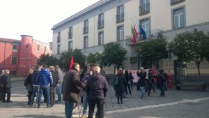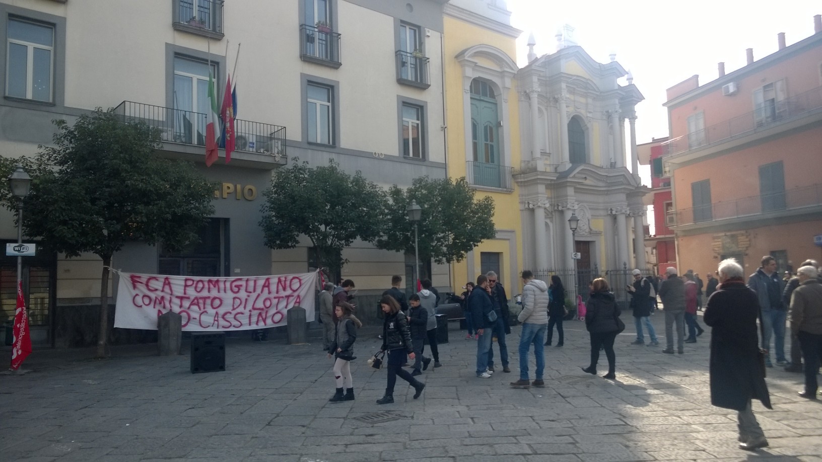Ieri in piazza Municipio si è tenuta l’assemblea pubblica promossa dal sindacato Si Cobas per alzare la voce contro i trasferimenti provvisori a Cassino di circa 500 lavoratori dello stabilimento di Pomigliano della Fca. Il pianto della moglie di uno degli operai selezionati dall’azienda per la trasferta non è passato inosservato. Non molti i partecipanti al presidio. Il monito di Don Peppino Gambardella: «Città assente. Svegliatevi».