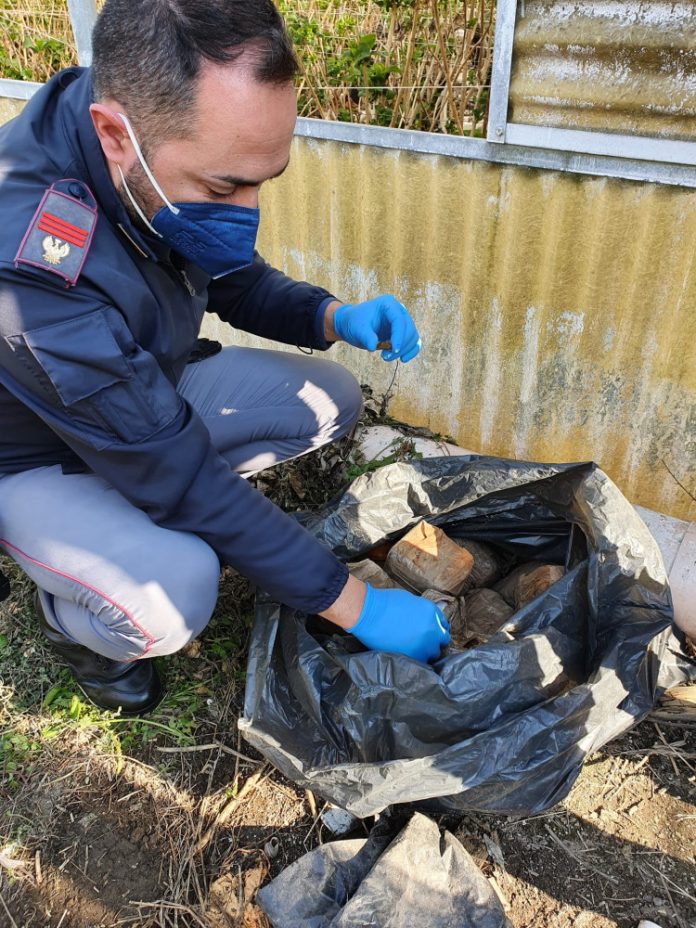 Ieri pomeriggio gli agenti del Commissariato di Pompei, con il supporto delle Unità Cinofile antidroga dell’Ufficio Prevenzione Generale e del Reparto Prevenzione Crimine, durante un servizio di contrasto allo spaccio di sostanze stupefacenti hanno effettuato un controllo in un terreno incolto nei pressi di via Traversa Gesuiti a Pompei dove hanno rinvenuto e sequestrato 20 blocchi di hashish per un peso di circa 23 kg.