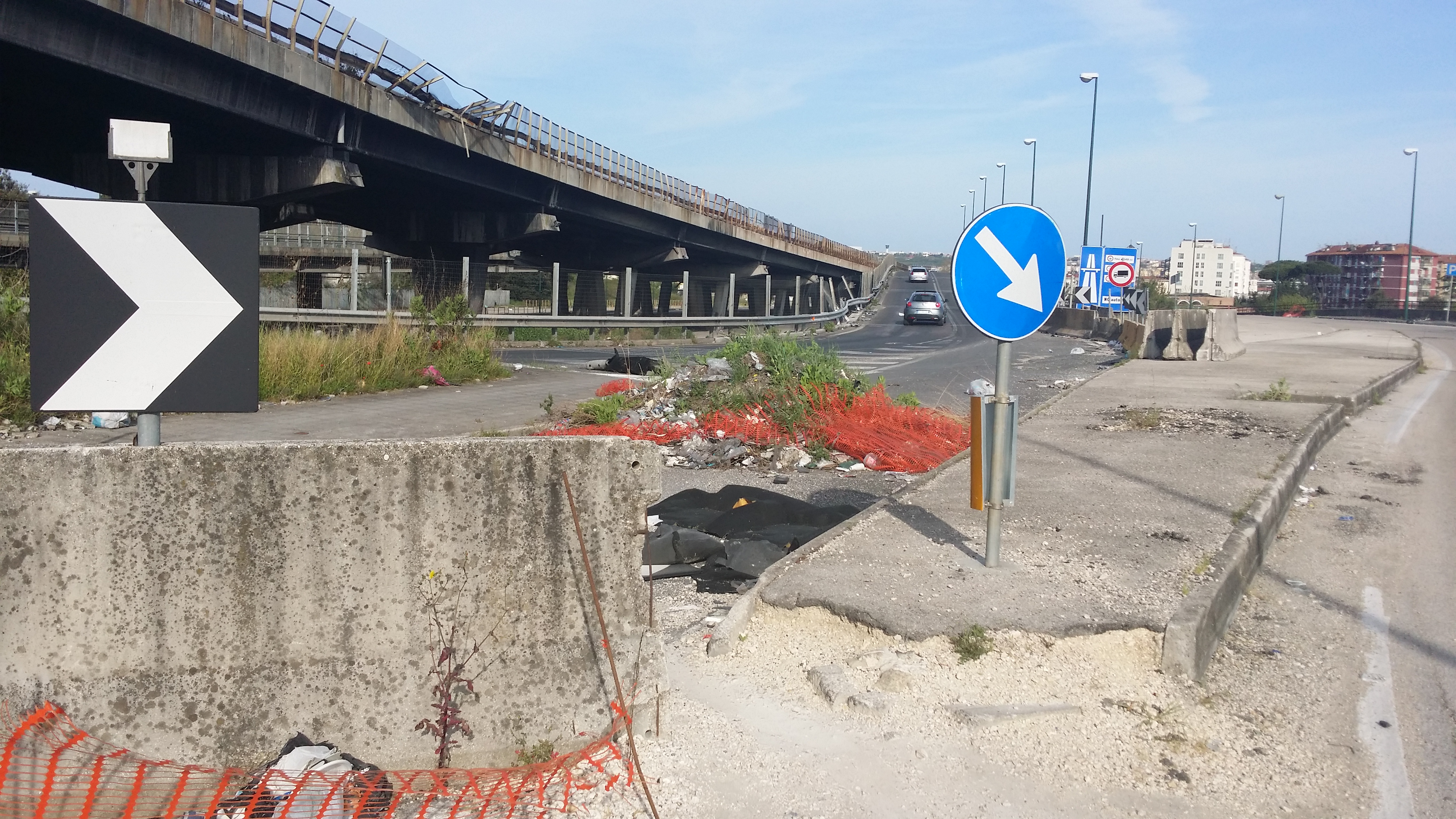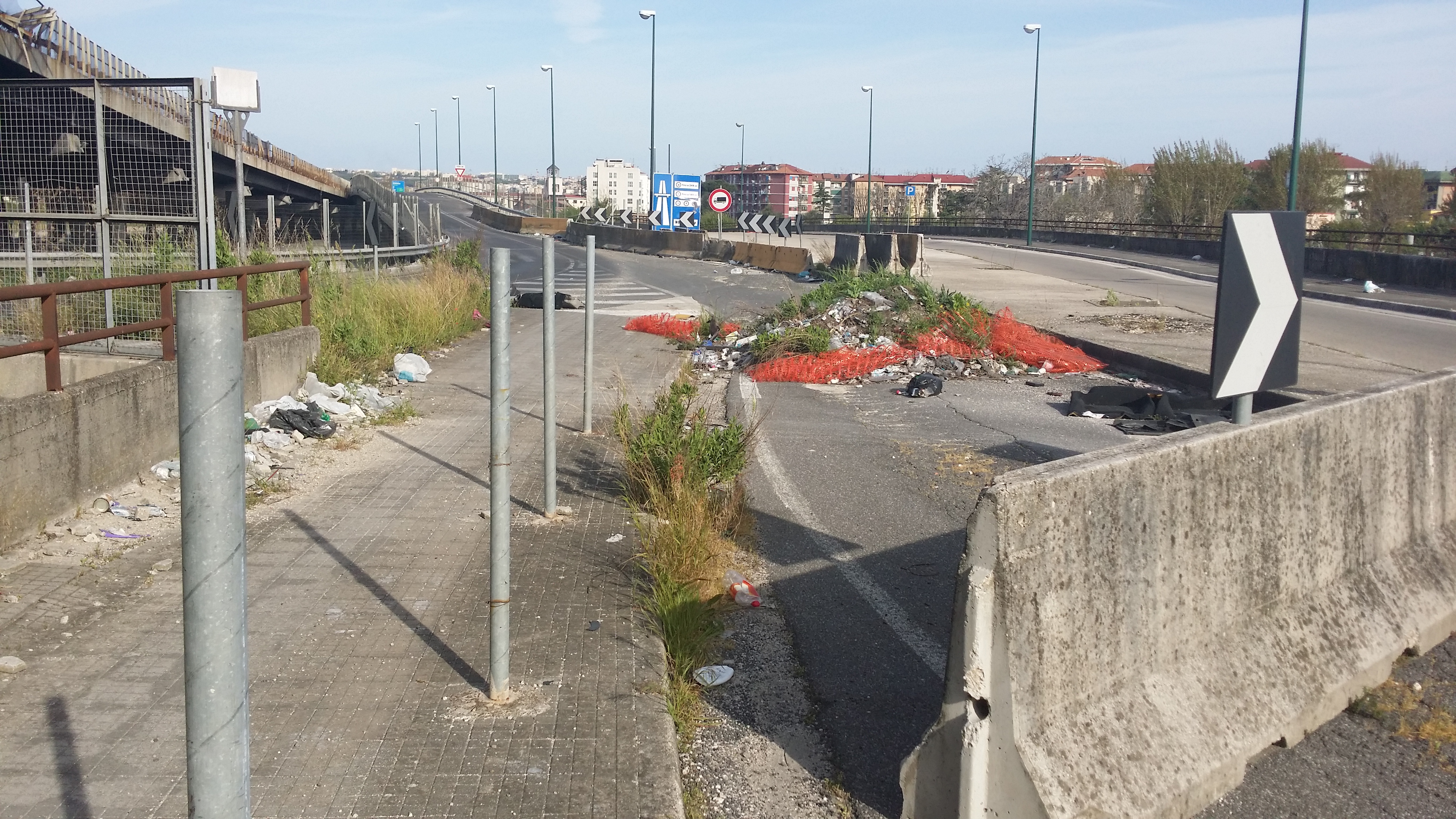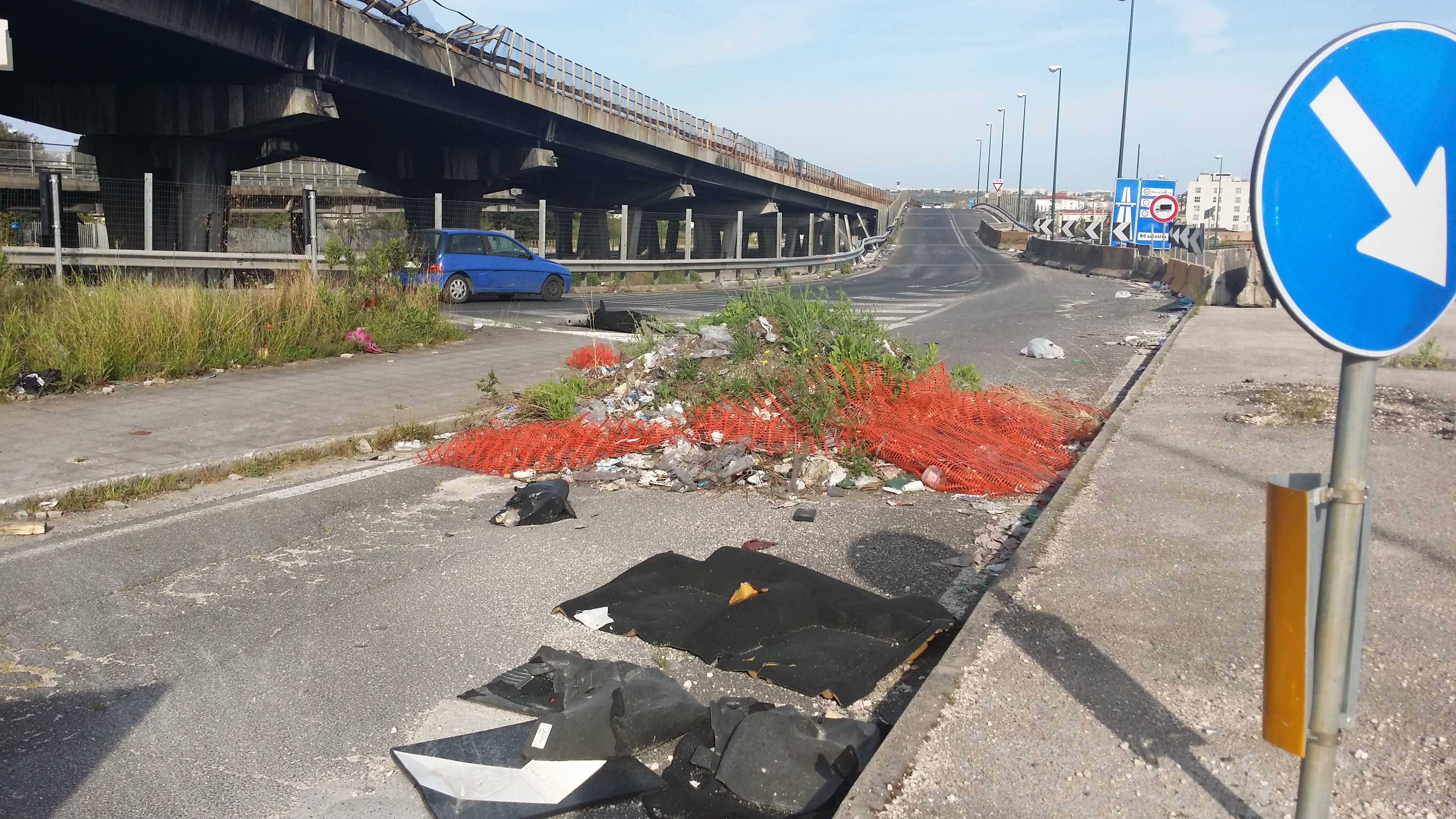 L’ingresso allo svincolo dal lato di Ponticelli è stato riaperto, qualche anno fa. L’area che si trova sotto i ponti della superstrada 162, che per anni aveva ospitato, oltre la discarica abusiva anche il locale mercato rionale settimanale, è stata recintata con dei paletti, forse per evitare l’accesso di intrusi e il ripetersi della crescita indisturbata della discarica abusiva. Al di là dei paletti, tale area in parte è stata bonificata e in parte, la monnezza accumulata per anni, crescendo, ha formato delle “colline fiorite”. Il mercato è stato spostato nella strada di fronte, e i venti metri di accesso alla rampa sono ancora chiusi da alcuni blocchi di cemento.