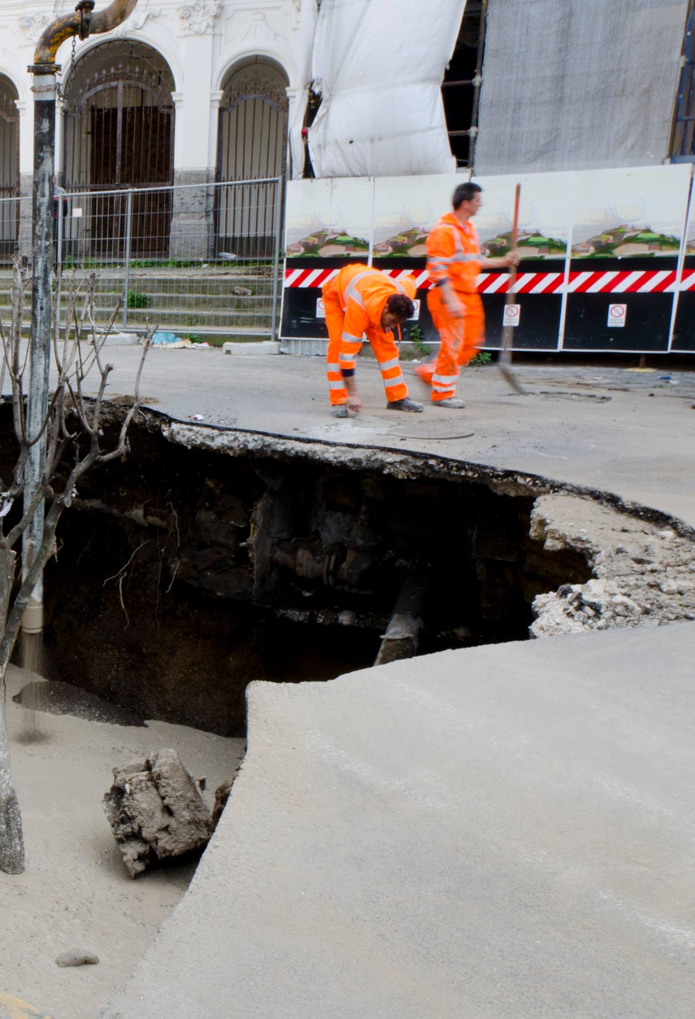 Alle due di ieri pomeriggio sono iniziati i lavori di sistemazione della strada nel tratto finale di via Roma, all’altezza di piazza San Giorgio, pieno centro di Afragola. Qui, nella notte tra domenica e lunedi, si è aperta un’enorme voragine che ha inghiottito un’auto parcheggiata e che ha costretto alcune famiglie a evacuare dalle loro case. Intanto tra un paio di giorni il materiale di riempimento della voragine sarà assorbito completamente dal sottosuolo. A quel punto sarà possibile rifare l’asfalto e consentire la riapertura al traffico. Nel frattempo la circolazione stradale è interdetta per lavori in corso nel tratto che da piazza Castello conduce in piazza San Giorgio, e deviata in via Calvanese nel tratto finale di via Roma in direzione piazza San Giorgio. Non è la prima volta e non sarà nemmeno l’ultima che la zona tra Afragola e Casalnuovo viene colpita dal triste fenomeno delle voragini, improvvisi cedimenti creati dai vuoti lasciati a seguito dell’asportazione del tufo a scopo edilizio. Un’attività che risale ai tempi, ormai lontani, antecedenti all’uso massiccio del calcestruzzo. Resta il fatto che le amministrazioni locali non hanno saputo adottare piani in grado di rendere più sicuri i territori soggetti a questa problematica. In passato alcune voragini hanno causato tragedie di notevole portata.