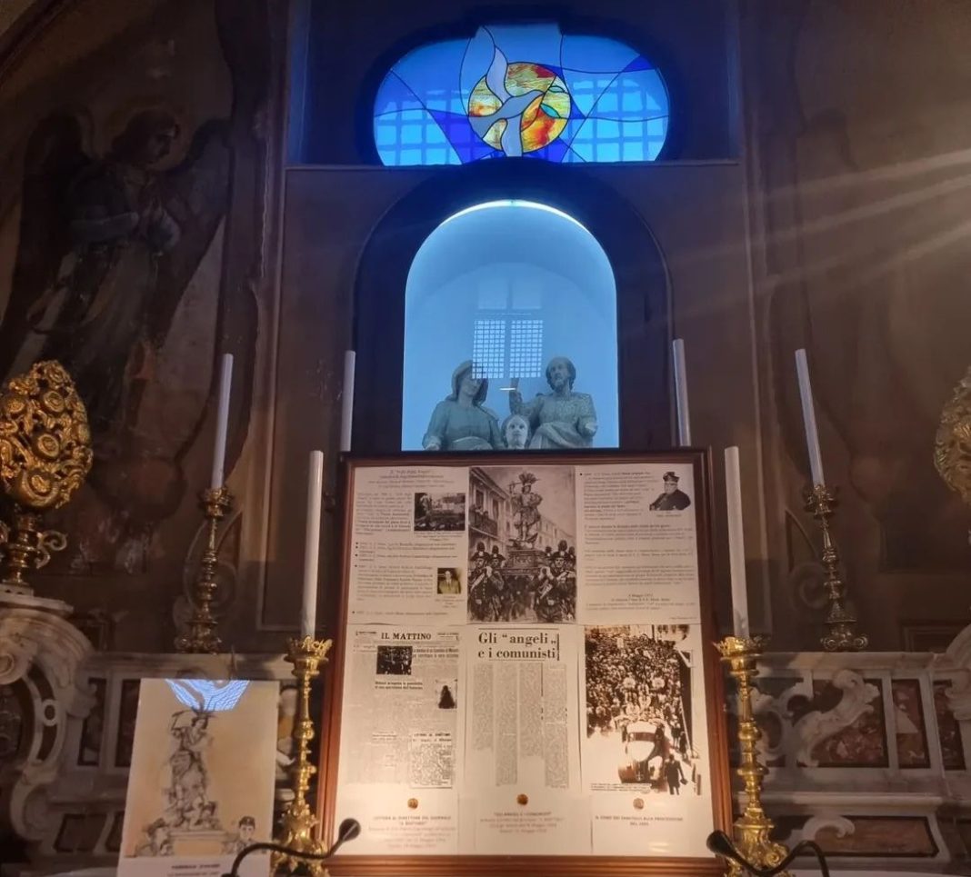 I dirigenti scolastici, qualche docente, e qualche associazione- il Comitato Civico “A. Cifariello”, il Rotary, l’Archeoclub- fanno quello che possono, e di questo li ringraziamo: ma le pagine non scritte sono ancora troppo numerose.”. Lo scrissi sette anni fa, e lo stato presente delle cose lo lascio giudicare ai lettori. Diceva Salvatore Battaglia che chi non conosce la storia del luogo in cui vive non conosce sé stesso. Nel 1864 il sottoprefetto Serpieri vietò il “volo degli angeli” e Michele de’Medici gli scrisse “che muta e squallida è riuscita la festa dell’8 maggio perché mancante del Volo che rende entusiasti questi abitanti e, nel contempo, attira migliaia e migliaia di persone da Napoli e dai paesi circonvicini, che per godersi la festa lasciano non poco danaro nel Comune, e quindi attivandosi il commercio, si dà campo alla gente di vivere la vita”. Il principe di Ottajano propose al Serpieri di autorizzare il “volo” durante la festa del 29 settembre, ma il Sottoprefetto fu irremovibile, giudicando quel “volo” “un costume contrario ai tempi di progresso e di civiltà” portati dall’Unità nazionale. Anzi, due anni dopo fu cancellata anche la processione del 29 settembre. Nel 1875 il vescovo Formisano riprese la guerra “nolana” contro “il volo degli angeli”.