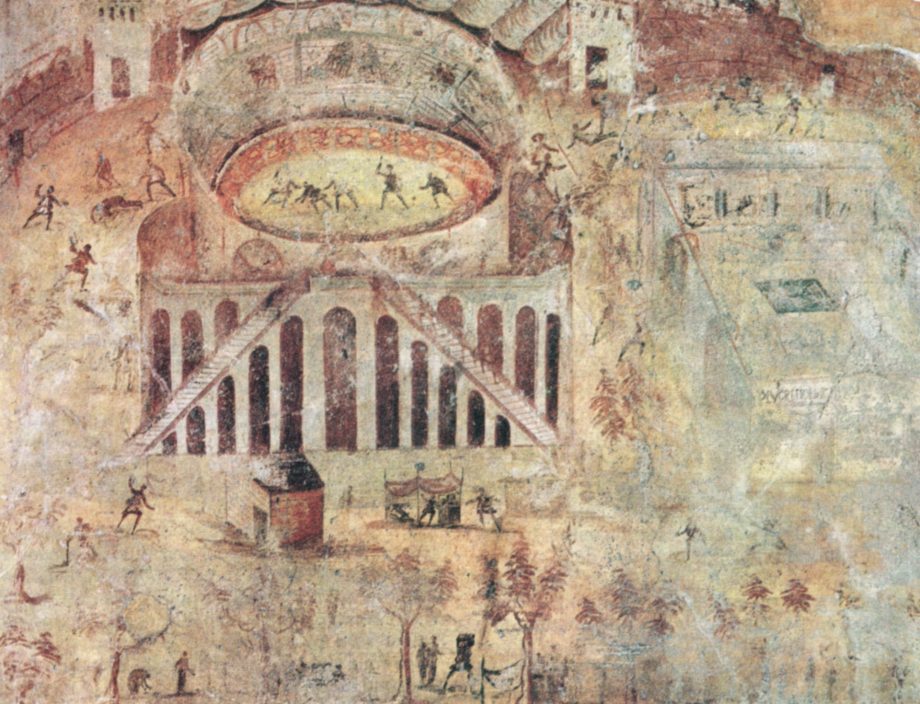 Il lavoro prezioso di chi studia, con serietà e competenza, i resti dell’Antico nel territorio vesuviano e nella Felix Campania. In un affresco nella “domus” del sacerdote Amandus il gladiatore Felix Pompeianus sconfigge l’avversario che si chiama Spartacus. Nel 57 d. C. nell’anfiteatro di Pompei, durante uno spettacolo di gladiatori, si scontrano i tifosi pompeiani e quelli di Nocera. Vincono i pompeiani, ma Nerone infligge all’anfiteatro una squalifica di 10 anni, ridotta in seguito grazie, forse, alla raccomandazione di Poppea.