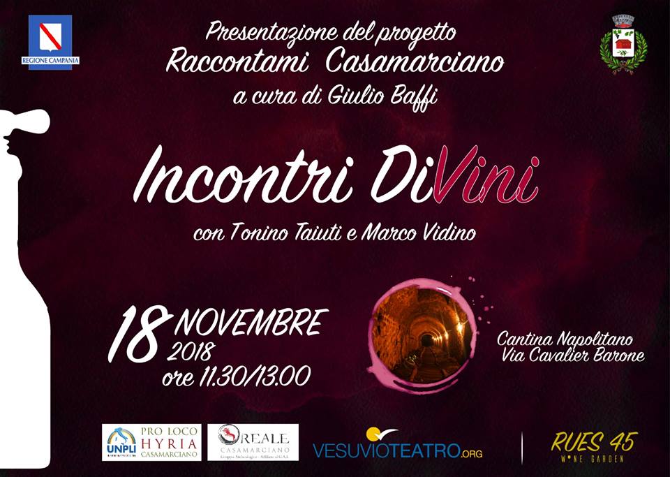 Nasce “Raccontami Casamarciano”, il progetto di arte, cultura ed enogastronomia promosso dall’amministrazione comunale guidata dal sindaco Andrea Manzi con il quale il piccolo comune dell’area nolana, già palcoscenico lo scorso settembre dell’importante rassegna nazionale teatrale, farà da cornice ad una serie di spettacoli di rievocazione storica dando voce di volta in volta a personaggi, protagonisti di performance itineranti nei luoghi più nascosti della città, a cominciare dalle cantine. Il progetto, che porta la firma di Giulio Baffi, presidente dell’accademia di belle arti di Napoli, coinvolgerà l’intero paese con scritture originali, incontri, letture e laboratori in cui l’attore diventa anche spettatore e viceversa. Non solo cultura, previsti anche momenti di gastronomia con la degustazione di piatti tipici locali.