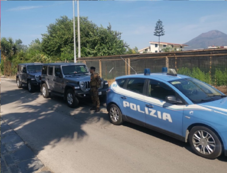 Per il controllo e verifica dei siti individuati con il coordinamento diretto della Dott.ssa Palumbo, Dirigente del Commissariato di Pompei, sono stati impiegati 7 equipaggi per un totale di 18 donne e uomini, messi in campo dall’Esercito Italiano su base 3° Bersaglieri e Cavalleggeri Guide 19°, con unità della Polizia di Stato, Carabinieri e Polizia Municipale di Pompei, Guardia di Finanza di Torre Annunziata e funzionari dell’Ispettorato Centrale Repressione delle Frodi (ICQRF).