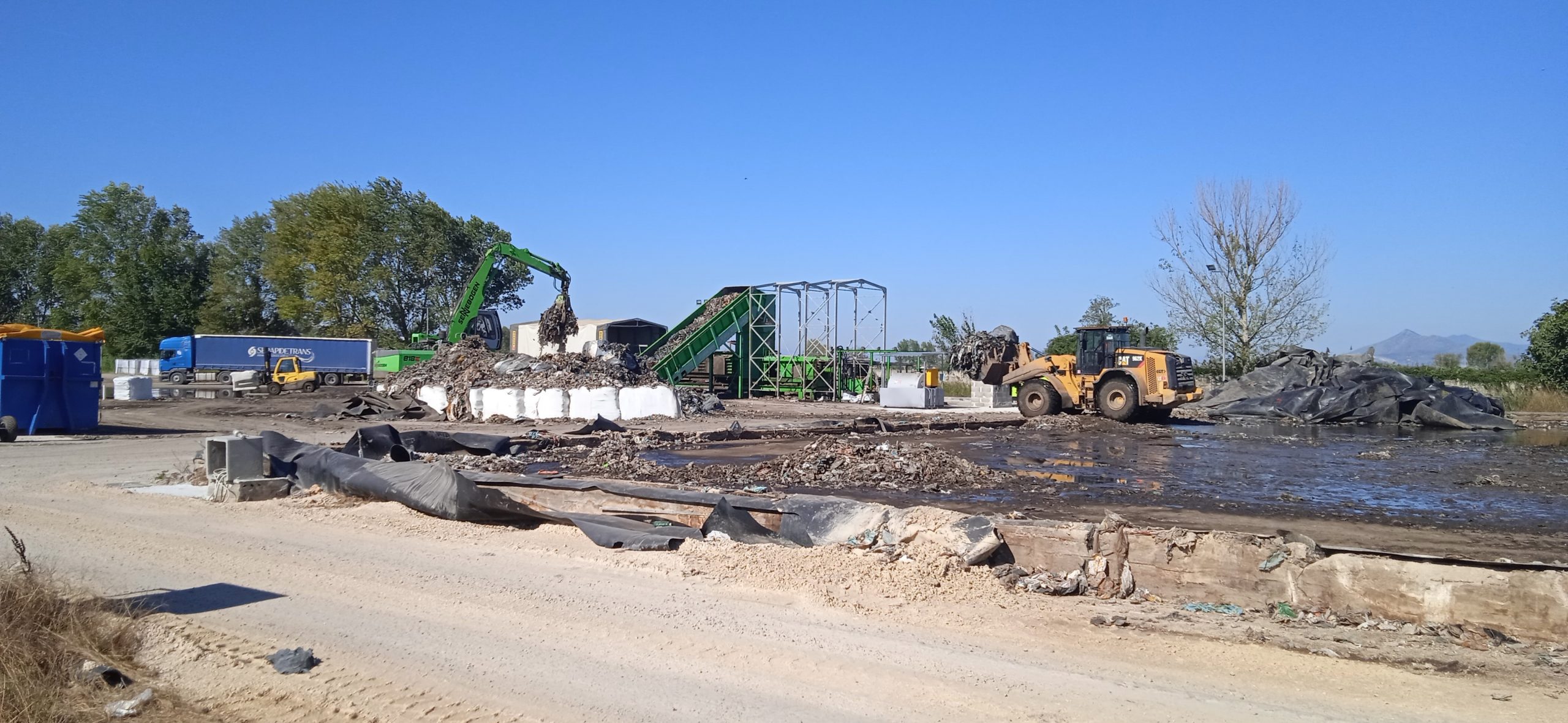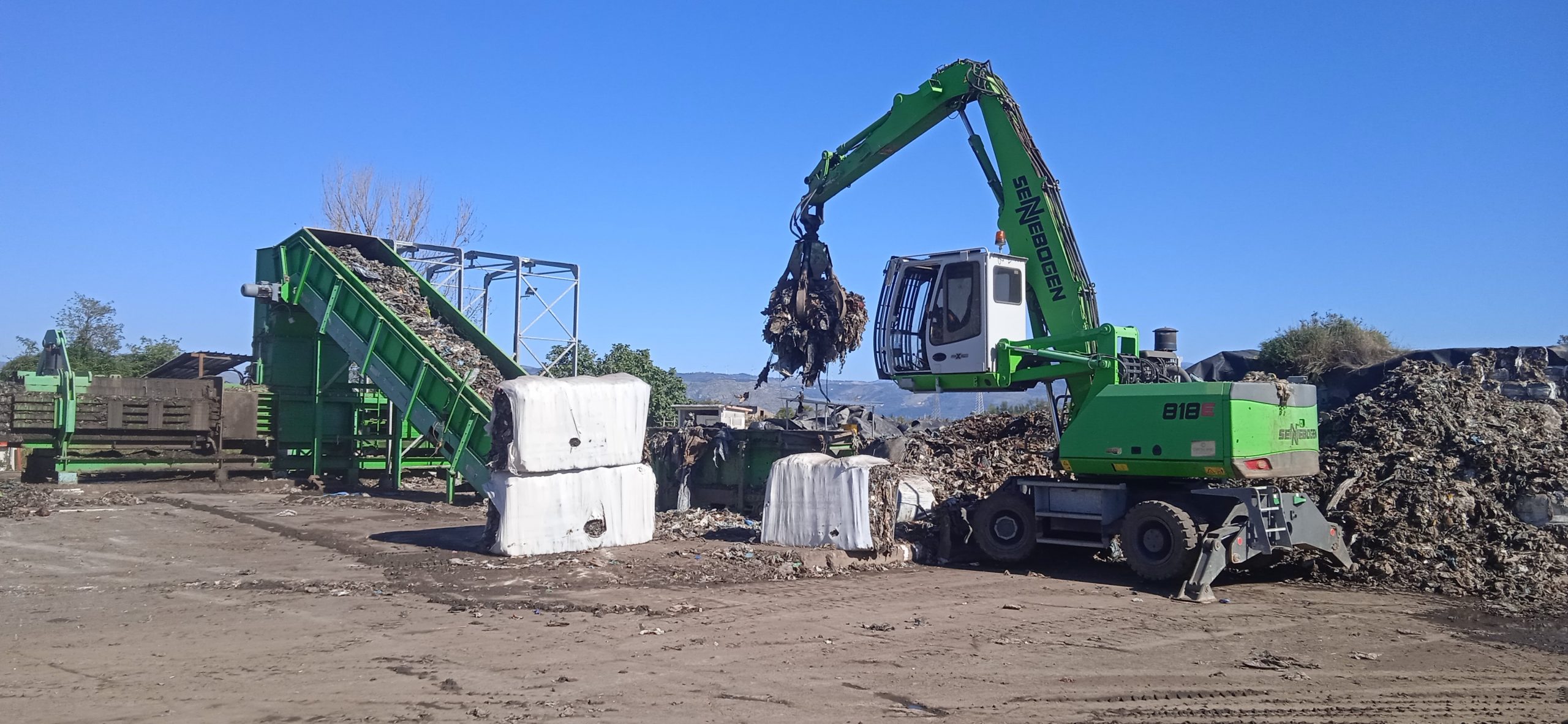 Durante lo smembramento, effettuato da una ruspa, delle vecchie ecoballe ormai consumate dal tempo, i rifiuti vengono poi prelevati da un “ragno” che li posiziona in un impianto, montato di recente, che pressa e quindi impacchetta gli scarti all’interno di una fascia di plastica. A questo punto si producono nuove ecoballe che vengono infine caricate sui tir in partenza per il porto di Napoli, dove sono infine stipate nelle navi.