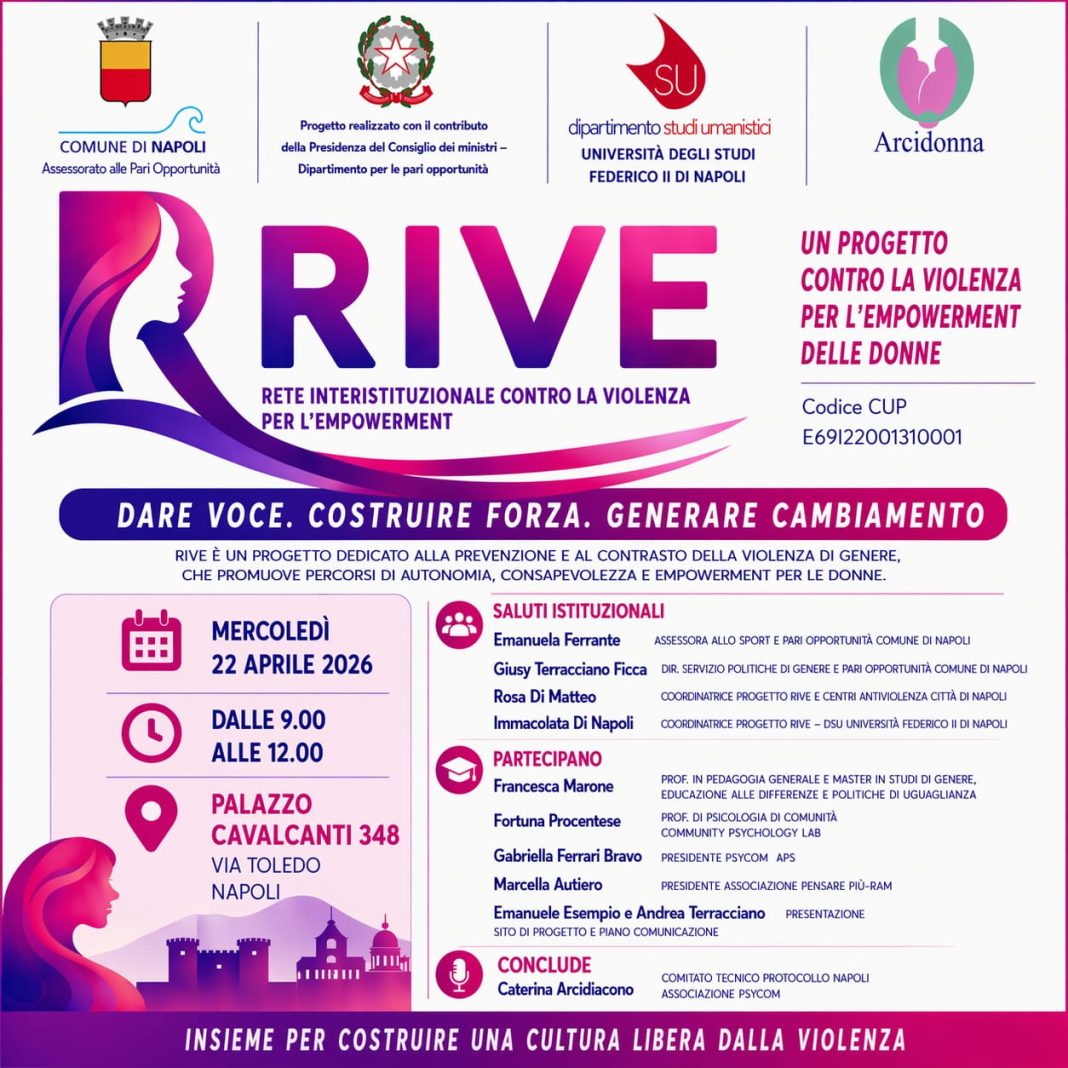 Napoli diventa laboratorio di innovazione sociale con il lancio di RIVE – Rete Interistituzionale contro la Violenza per l’Empowerment, in programma mercoledì 22 aprile 2026 a partire dalle 9 a Palazzo Cavalcanti 348.