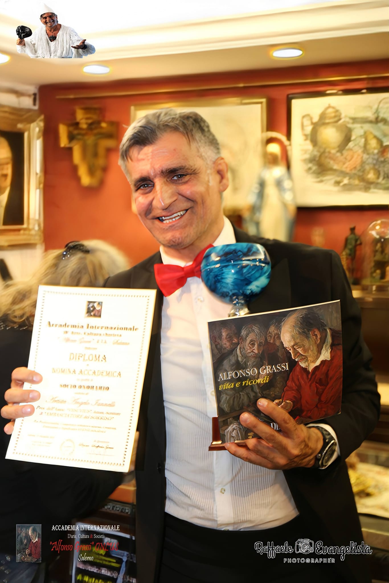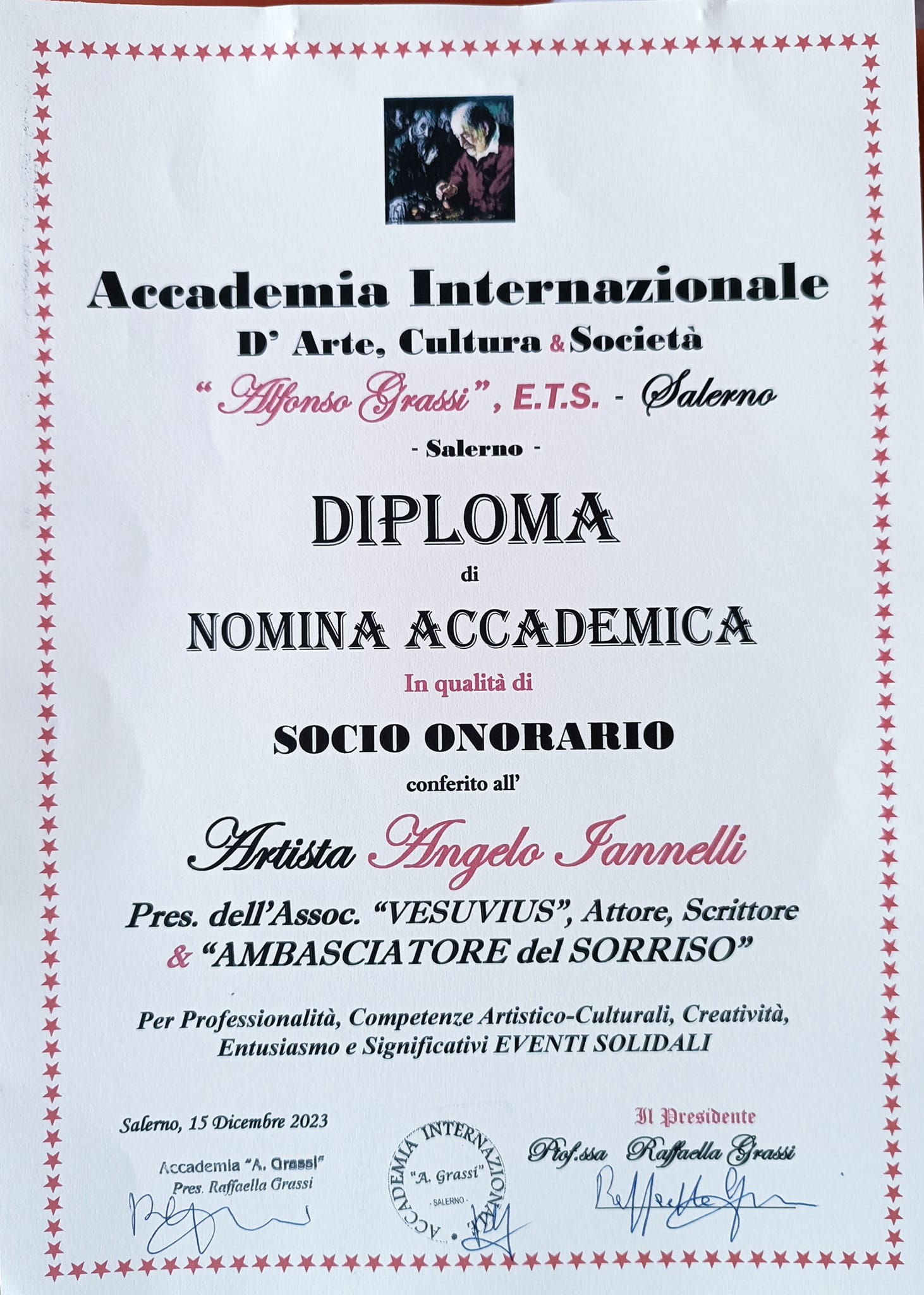 Si è svolta a Salerno venerdì 15 Dicembre presso l’Accademia A. Grassi in Via Porta Elina 9, sotto l’incantevole magia delle luci d’artista, la decima edizione dell’evento di solidarietà dedicato alle persone meno fortunate “A Natale ti regalo un Sorriso “manifestazione ideata e curata dall’attore e scrittore Angelo Iannelli “Ambasciatore del Sorriso” ed organizzata dall’ “Accademia A. Grassi Onlus e dall’ “Associazione Vesuvius A.P.S.”