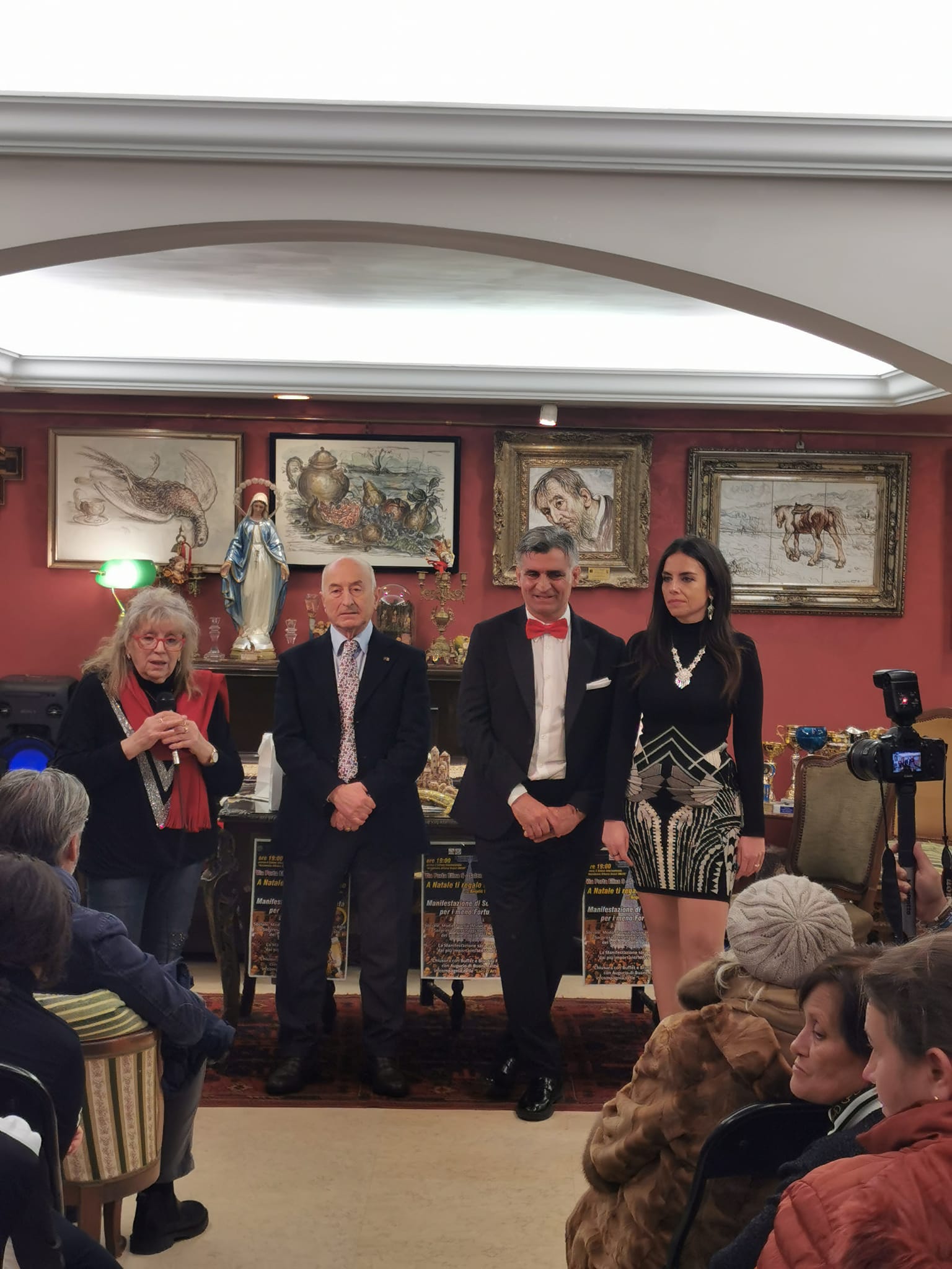 Una serata ricca di emozioni : Sociale, moda, cultura, cabaret, musica degustazioni e brindisi finale. La manifestazione si è aperta con gli onori di casa della professoressa Raffaella Grassi Presidente Accademia A.Grassi. Saluti Istituzionali: Onorevole Guido Milanese, Consigliere Delegato del Ministro dell’Ambiente ENR, che ha ricordato l’importante lavoro sociale e culturale dell’artista Iannelli a livello regionale e nazionale soffermandosi sul senso del Natale oggi. Il Sindaco di Brusciano avvocato Giacomo Romano ha sottolineato l’impegno dell’Ambasciatore del Sorriso Angelo Iannelli “Eccellenza Bruscianese “che continua instancabile a portare avanti il progetto della Bruscianesità nel mondo. Alla serata sono intervenuti Edda Cioffi presentatrice e conduttrice tv, Emanuela Gambardella insegnante e giornalista Stefania Pagano condutTrice Tv. La kermesse solidale e culturale, ha visto la presentazione del libro di Angelo Iannelli “La grande bellezza della Bruscianesità” edito da Albatros, con un momento spettacolare la sfilata delle modelle: Brenda Scudo, Francesca Nastro, Lucia Schettino e Annachiara Amoruso, che hanno incantato con la loro bellezza il prestigioso Salone culturale “A. Grassi” con gli abiti dell” Accademia di Moda Maria Mauro, coordinati dalla stilisty fashion Francesca Palumbo. In passerella le eccellenze di Brusciano (NA): Le “papacelle” dell’azienda Agricola Luigi Turboli , la pasta trafilata in bronzo “Le Gemme del Vesuvio” il giglio di ceramica costruito per l’occasione dall’artista Sebastiano Romano e il libro dell’autore Iannelli , emozionato ha parlato del suo amore verso la sua terra , delle sue eccellenze e dell’impegno verso i meno fortunati .