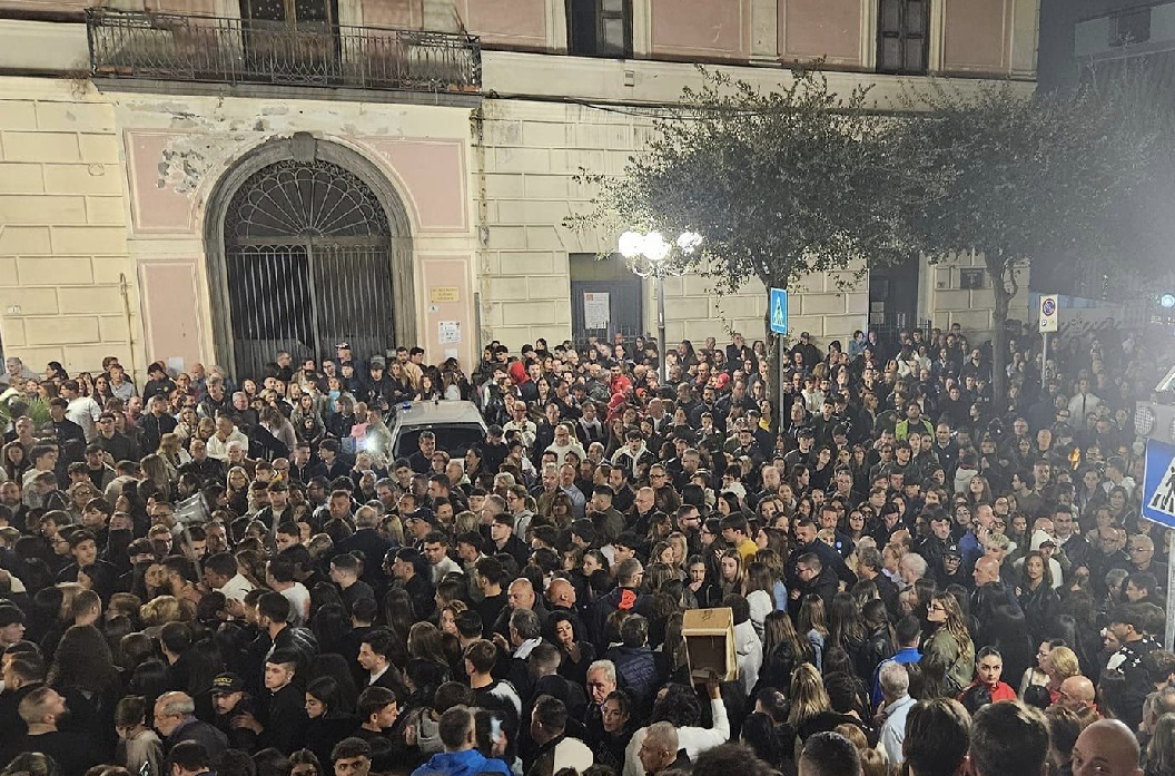 SAN SEBASTIANO AL VESUVIO – C’erano tantissime persone a ricordare Santo Romano, il 19enne incensurato ucciso nella notte tra venerdi e sabato in piazza Capasso davanti al Municipio di San Sebastiano al Vesuvio. Tanti amici, la squadra di calcio Micri nella quale giocava come portiere. Tra i partecipanti anche i genitori di Francesco Pio Maimone, 18 anni, ucciso la notte del 20 marzo 2023 tra gli Chalet di Mergellina. Lacrime e striscioni per chiedere giustizia per il giovane. In piazza anche i familiari di Santo. Oggi la sua squadra di calcio, il Micri, che milita nell’Eccellenza in Campania, non ha giocato in segno di lutto.