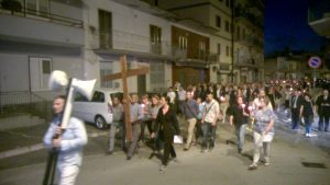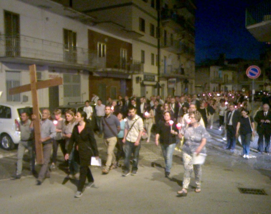 Con le fiaccole accese, in un centinaio hanno marciato, pregando, a partire dalla chiesa Maria Ss. di Libera.