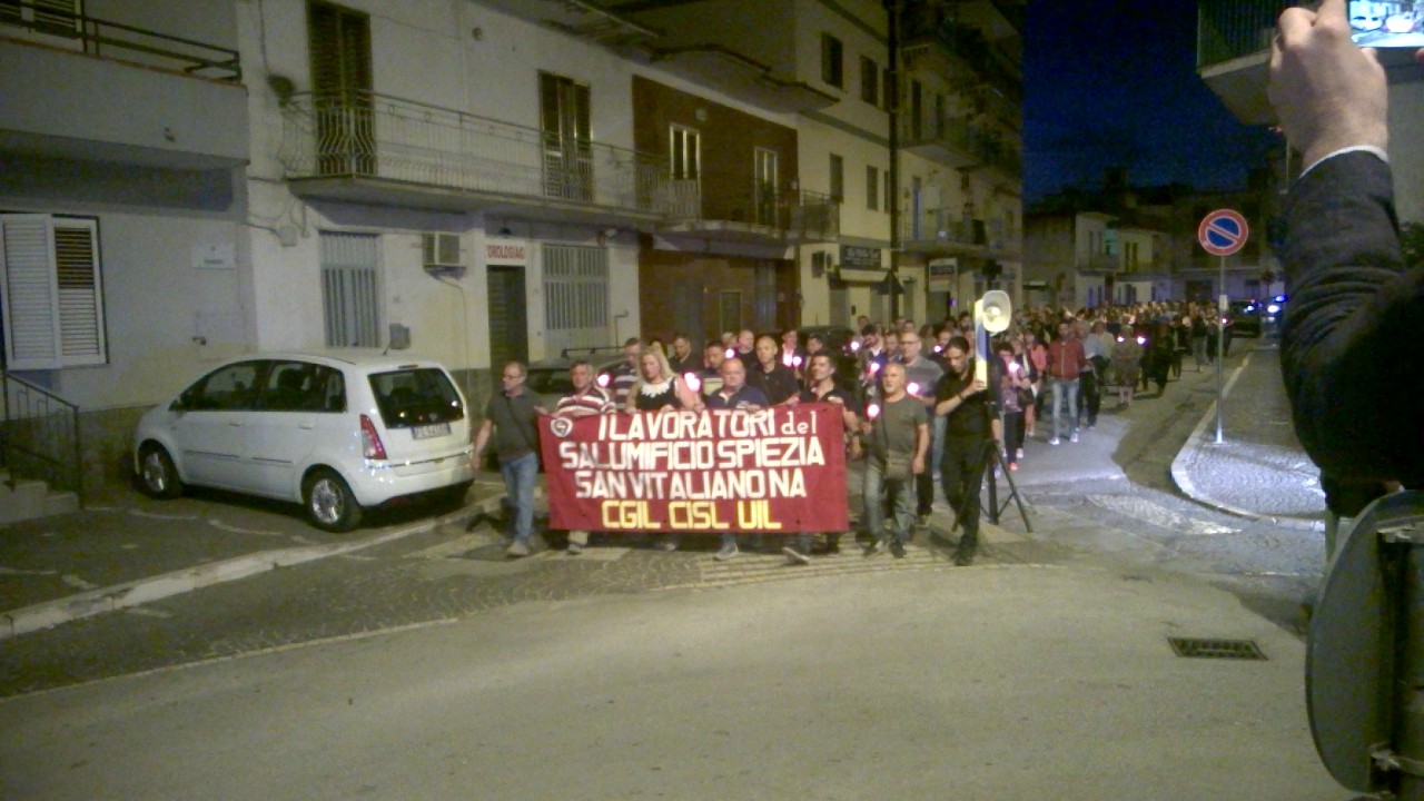 Cittadini, lavoratori e istituzioni in processione, ieri sera, per esprimere vicinanza al Salumificio Spiezia, che dal 1907 è presente sul territorio, e ai suoi quasi 90 dipendenti a rischio licenziamento. Per i lavoratori è stata avviata la procedura di mobilità. Azienda in liquidazione.