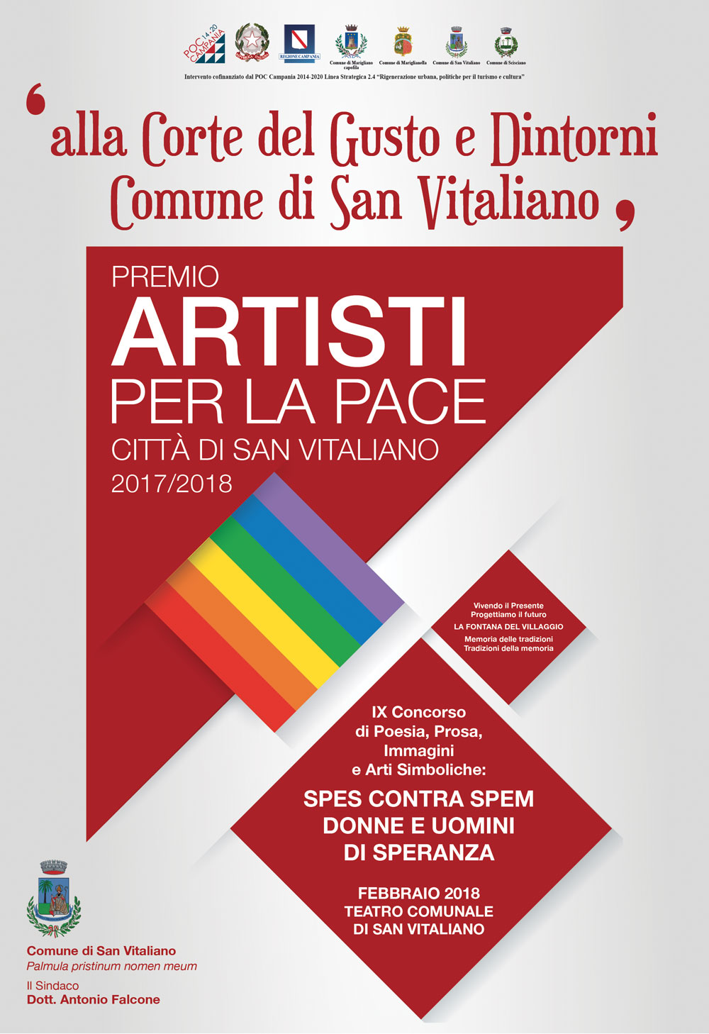 Si avviano alla conclusione le attività previste dal progetto “Alla Corte del Gusto”, realizzato dal Comune di Marigliano e co-finanziato dalla Regione Campania nell’ambito del POC Campania 2014-2020 Linea Strategica 2.4 “Rigenerazione urbana, politiche per il turismo e cultura”, con la pubblicazione del bando del Premio “Artisti per la Pace”, che si terrà presso il Comune di San Vitaliano, partener dell’iniziativa. Il premio, giunto alla nona edizione, intende perseguire l’obiettivo di sensibilizzare l’opinione pubblica, e in modo particolare i giovani e il mondo della scuola, sui temi della pace, della giustizia sociale, della nonviolenza, della libertà, dei diritti umani, dell’autodeterminazione dei popoli e della solidarietà nelle sue molteplici espressioni. Il tema scelto per l’edizione 2017/2018 è, infatti, “Spes contra Spem – Donne e Uomini di Speranza”. Il Comune di San Vitaliano, impegnato nella divulgazione della cultura in tutte le sue forme, intende dare spazio ai valori sopra descritti grazie al talento e attraverso la partecipazione di artisti provenienti da tutta Italia, al fine di rendere il Premio “Artisti per la Pace” un momento di comunione, unione e soprattutto di scambio costruttivo d’idee che porti ad una seria e duratura divulgazione di un messaggio di pace utile agli uomini e alla comunità. Il bando prevede la possibilità di partecipare all’interno di quattro sezioni: poesia edita e inedita; prosa edita e inedita; immagine (disegni, dipinti, fotografie); fumetto edito e inedito. Quest’ultima sezione viene introdotta per la prima volta proprio a partire dalla presente edizione del premio. Le opere candidate dovranno essere inviate tramite e-mail all’indirizzo utc@comune.sanvitaliano.na.it o essere recapitate presso l’Ufficio Protocollo del Comune di San Vitaliano secondo le modalità indicate nel bando. Tutte le opere dovranno essere accompagnate dalle generalità dell’autore e dalla scheda di partecipazione riportata alla fine di questo stesso Bando. Saranno accettate solo le opere tassativamente pervenute entro la data di scadenza del presente Bando di Concorso. Farà fede il timbro postale. In allegato all’opera dovrà essere consegnata la scheda di partecipazione debitamente compilata in ogni sua parte. Il termine ultimo per l’invio delle opere è fissato a venerdì 26 gennaio 2018. La cerimonia di premiazione si terrà sabato 17 gennaio 2018. Per scaricare il bando completo è possibile visitare il sito del Comune di San Vitaliano: www.comune.sanvitaliano.na.it
