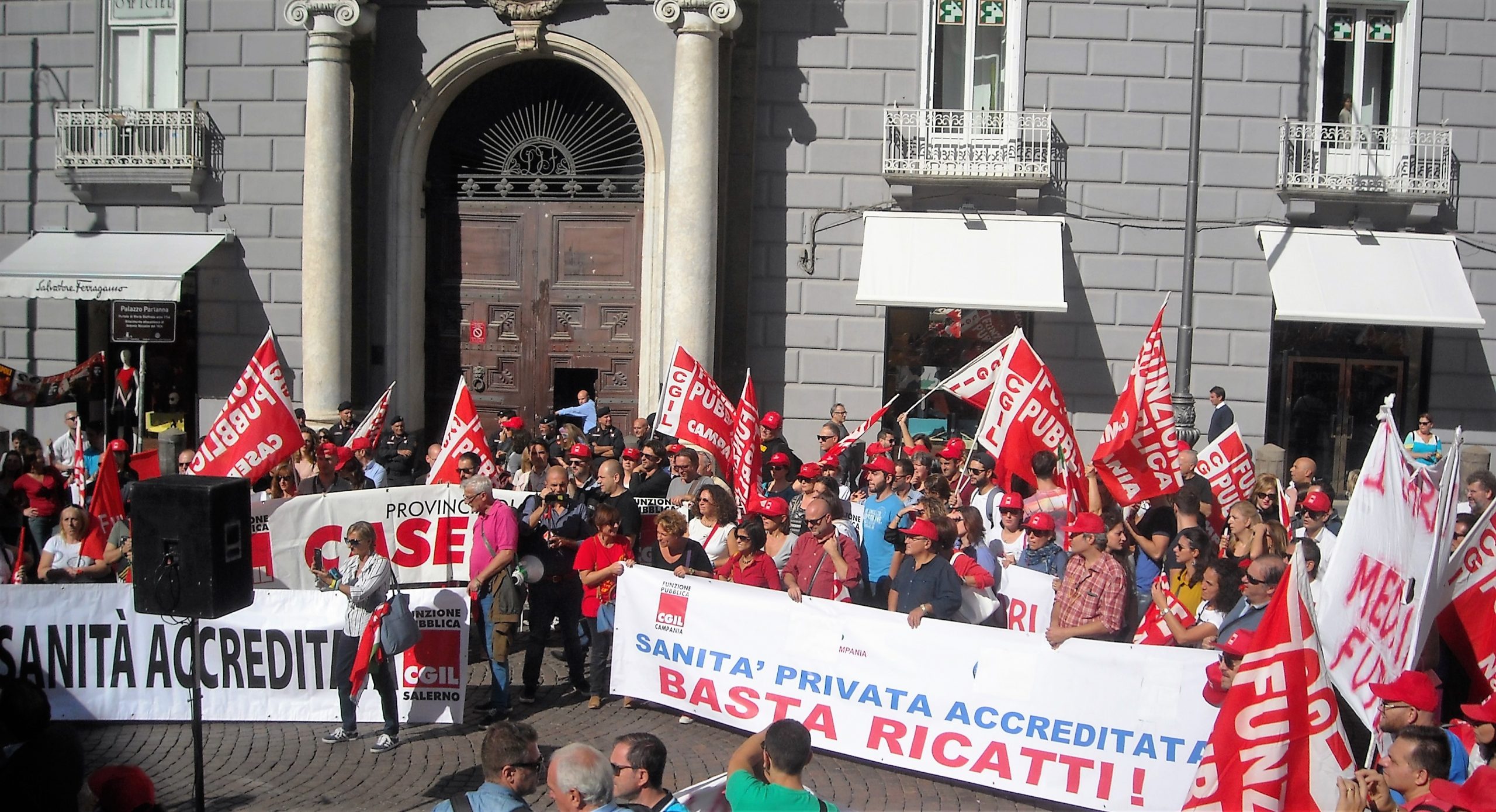 La sinistra sindacale che batte tutti, anche quelli che remano contro la mobilitazione dei lavoratori. Quella di ieri era infatti una scommessa per la Cgil: uno sciopero con corteo dei lavoratori della sanità privata voluto nonostante le divisioni, il no della Cisl e della Uil, ed il cui esito pareva incerto fino all’ultimo momento. Ma la scommessa è stata vinta. La Camera del Lavoro di Napoli e della Campania, insieme al sindacato di categoria, la Cgil Funzione Pubblica, ieri mattina è riuscita a portare in corteo oltre duemila addetti delle cliniche private e delle altre strutture convenzionate e accreditate della regione. Lavoratori che hanno manifestato sul lungomare colorando di bandiere bianche e rosse il breve tratto che collega palazzo Santa Lucia, sede della presidenza della giunta regionale, a piazza dei Martiri, dove c’è la sede dell’Unione degli Industriali di Napoli. Il motivo principale che ha spinto la Cgil e la sua organizzazione di categoria, la Funzione Pubblica, a mantenere il punto confermando l’astensione di ieri è stato che le procedure di mobilità, cioè di licenziamento collettivo, e di cassa integrazione a zero ore non sono state ritirate dall’Aiop nonostante l’intesa sui tetti di spesa raggiunta la scorsa settimana tra l’Associazione italiana per l’ospedalità privata e il governatore Vincenzo De Luca. L’Aiop ha infatti sospeso solo i “preavvisi” di licenziamento per tutta una serie di strutture. Ma diverse altre sono rimaste nei guai. In corteo ieri c’erano per esempio i 35 tra tecnici e infermieri delle due cliniche di Pomigliano ex San Felice ed ex Meluccio, del gruppo Medicina Futura, per i quali la procedura di licenziamento scadrà proprio oggi. In caso di mancato accordo tra le parti (l’incontro è previsto stamane all’Ormel) scatteranno le lettere di estromissione forzata. Alla manifestazione hanno partecipato anche i 50 lavoratori della clinica Santa Maria del Pozzo di Somma Vesuviana, sotto procedura di mobilità. Ma nel corteo napoletano sono finiti tanti altri drammi occupazionali e produttivi. Per esempio la cassa integrazione a zero ore che sta interessando tutti i 100 addetti complessivi delle cliniche Santa Maria La Bruna di Torre del Greco e Santa Patrizia di Secondigliano, entrambi impianti chiusi. Cig che sta per abbattersi anche sui 60 dipendenti del centro diagnostico Medicina Futura di Acerra. Molto difficile la situazione pure nei centri diagnostici e di riabilitazione “Plinio” di Portici ed Ercolano: 60 operatori senza stipendio da marzo. E sono senza stipendio da due mesi i 160 addetti della clinica Lourdes di Massa di Somma. Grossi problemi salariali e occupazionali anche nei centri sanitari “Serapide”, a Pozzuoli, e alla Trusso di Ottaviano. Ieri in piazza c’erano, tra gli altri, i lavoratori della clinica Villa dei Fiori di Acerra e della Clinic Center di Napoli. “C’erano tutti – spiega Walter Schiavella, commissario della Cgil di Napoli e della Campania – perché questa situazione non può reggere se non si cambia radicalmente il modello di gestione della sanità”. Ileana Remini, della segretaria Cgil FP, insieme a Lenina Castaldo, ha rivendicato dal palco allestito in piazza dei Martiri “l’improrogabilità di un accordo che regoli una volta per tutte il settore sul fronte dei diritti e delle retribuzioni, altrimenti tutti nel settore pubblico”. “Il problema – conclude Alfredo Garzi, segretario generale della Cgil Funzione Pubblica della Campania – non si esaurisce con il contratto di servizio. La Regione deve aprire un tavolo su questa grave situazione destinata a permanere anche dopo una soluzione sui tetti di spesa “.