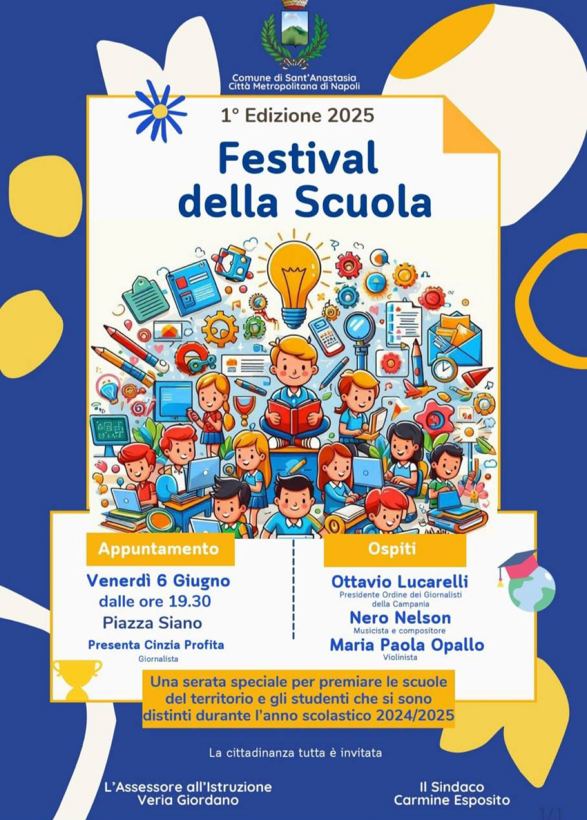 Aperto a tutti i cittadini, l’evento promosso dall’assessore all’Istruzione Veria Giordano e fortemente voluto dal sindaco Carmine Esposito mira a valorizzare, oltre che premiare, le scuole del territorio e gli studenti che si sono distinti durante l’anno scolastico 2024/2025.