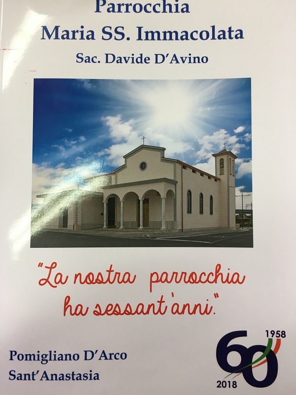 La festa del 60º anniversario della fondazione della Parrocchia M. SS. Immacolata, sita in zona periferica detta Ponte di Ferro, è programmata per domenica prossima alle 18,00 con la Santa Messa ed a seguire la presentazione del libro “La nostra parrocchia ha sessant’anni” scritto dal parroco Don Davide D’Avino. La comunità parrocchiale è in fermento e si attende una numerosa partecipazione all’evento patrocinato dall’Ente.
