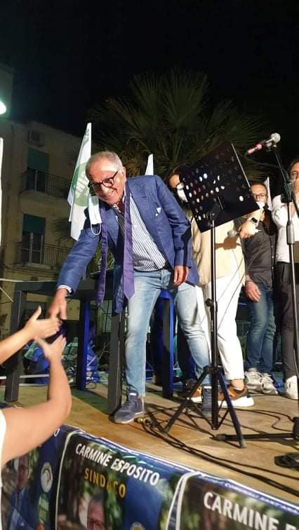 A Madonna dell’Arco, vista Santuario, il palco di Esposito si è trasformato, dopo i 47 minuti in cui il candidato sindaco ha letto, con incursioni a braccio, il suo intervento politico di chiusura della campagna elettorale, in momento di festa con tutti i candidati fino a tarda sera. Ma prima, introdotto da Elena Cenusa (cittadina di origine rumena candidata nella lista Cuore Anastasiano) e da un breve endorsement di Luigi De Simone, il già sindaco si è liberato della cravatta e ha iniziato l’ultimo discorso di questa tornata (ballottaggio probabile a parte), facendo gli auguri di guarigione a padre Giacomo Verrengia, parroco della chiesa francescana di Sant’Antonio.