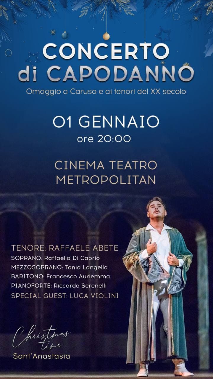 SANT’ANASTASIA – A Sant’Anastasia eventi in sicurezza Misure straordinarie per il concerto di Capodanno, a Sant’Anastasia si anticipano, per accedere allo spettacolo che si terrà al cineteatro Metropolitan di via D’Auria, le precauzioni volute dal Governo che andranno in vigore solo il 10 gennaio.