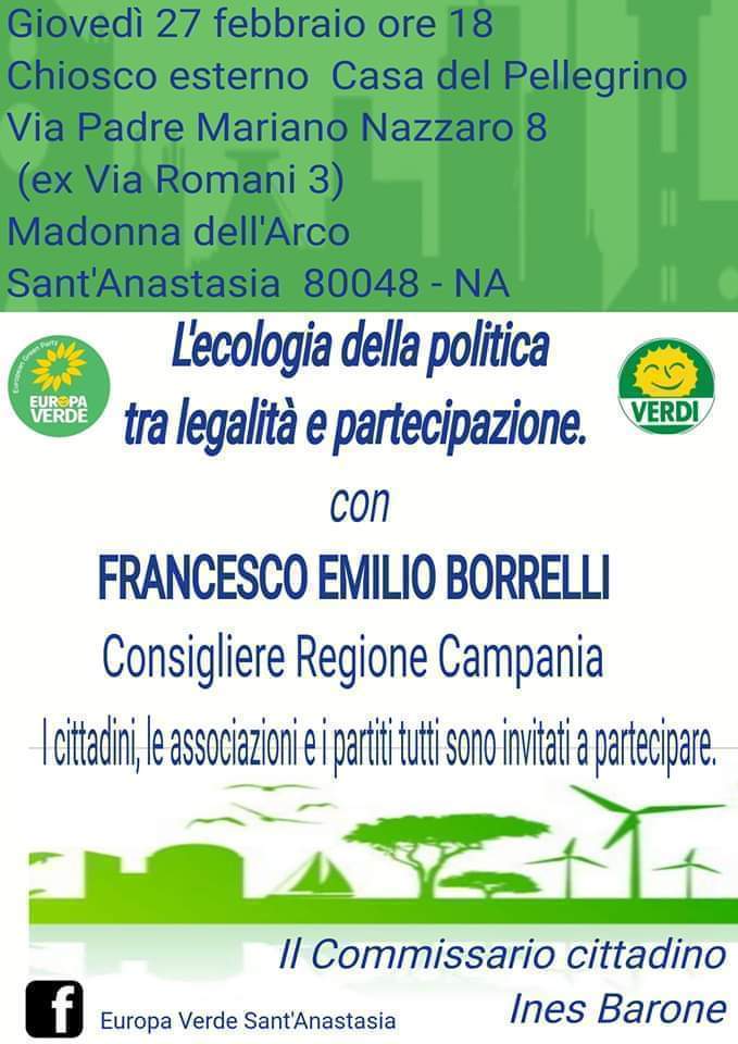 La «chiamata» a confrontarsi con il consigliere regionale Borrelli arriva dalla commissaria cittadina del partito del Sole che Ride, Ines Barone. L’appuntamento è alle 18 di giovedì 27 febbraio al gazebo esterno della Casa del Pellegrino a Madonna dell’Arco.