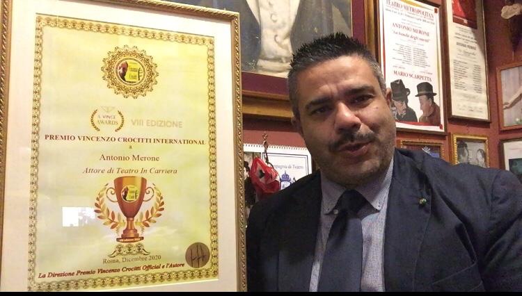 Riconoscimento importante per l’attore cavaliere Antonio Merone che ha ottenuto l’ambito premio “Il Vince”. Il celebre e internazionale omaggio dedicato all’attore romano Vincenzo Crocitti, scomparso nel 2010, non si è fermato neanche durante la pandemia e anche se con modalità diverse il direttore Francesco Fiumarella con il team dell’organizzazione è riuscito a premiare anche a “distanza” gli attori meritevoli. Merone, che quest’anno compie ben 35 anni di carriera teatrale, dichiara: <<Ringrazio il Premio Vincenzo Crocitti International per questo importantissimo riconoscimento, sono molto contento perché è la dimostrazione che in questi 35 anni ho lavorato bene e la mia dedizione per l’arte teatrale è arrivata al cuore del mio pubblico che mi segue da oltre tre decenni>> L’attore anastasiano, in pausa forzata per la situazione pandemica in corso, sta sfruttando questi mesi per studiare nuovi copioni da poter mettere in scena appena gli sarà possibile, e in riferimento alla “serrata” dei teatri commenta: <<È un duro colpo per noi artisti il sipario chiuso per così tanto tempo, purtroppo il Covid ha messo in risalto tutta la fragilità del sistema culturale italiano, ora in grave sofferenza. Un’emergenza economica, sociale e culturale che l’Italia non merita. Adottando tutte le misure di sicurezza per il contenimento del contagio, spero che nei prossimi mesi possiamo ritornare in teatro, perché senza non possiamo vivere>>.